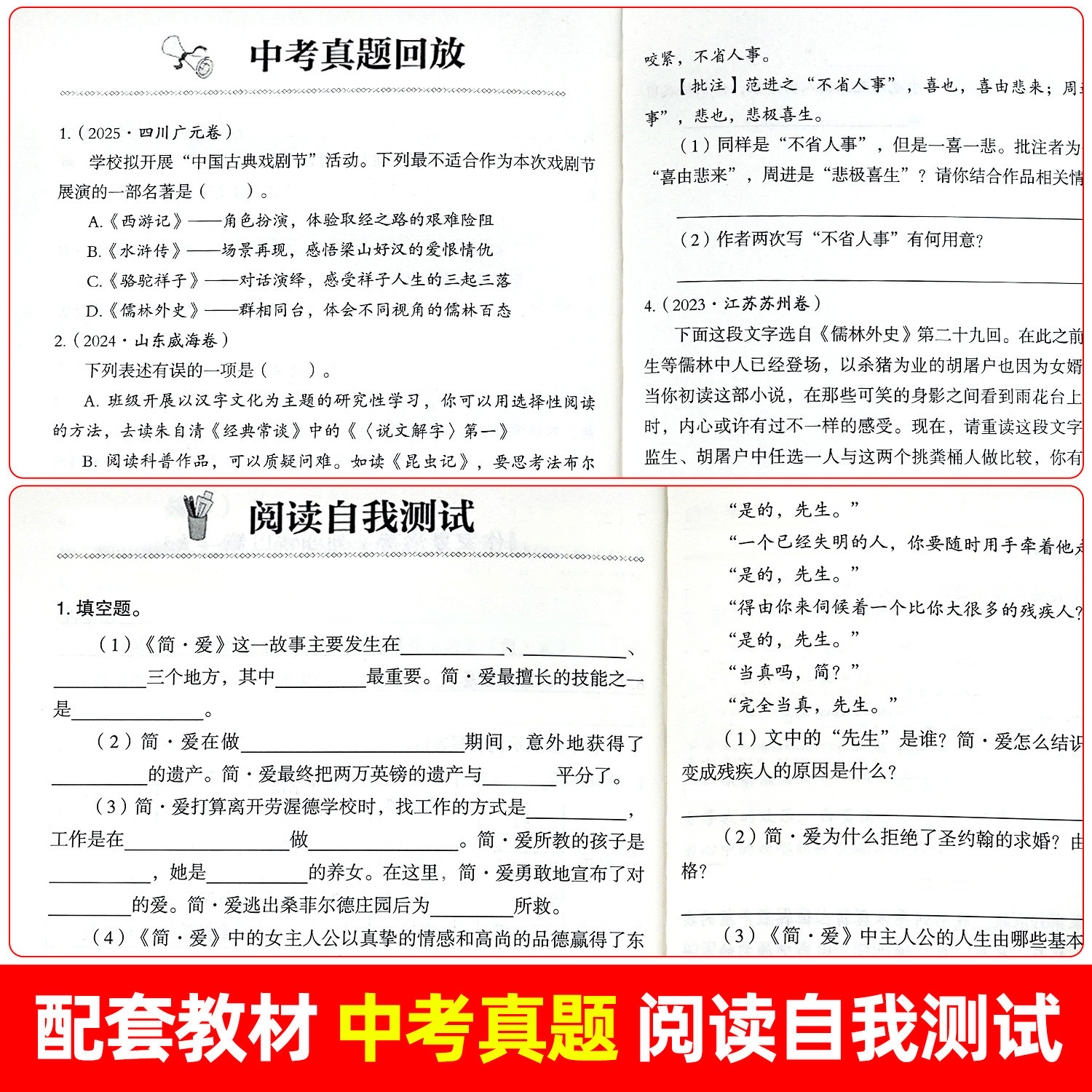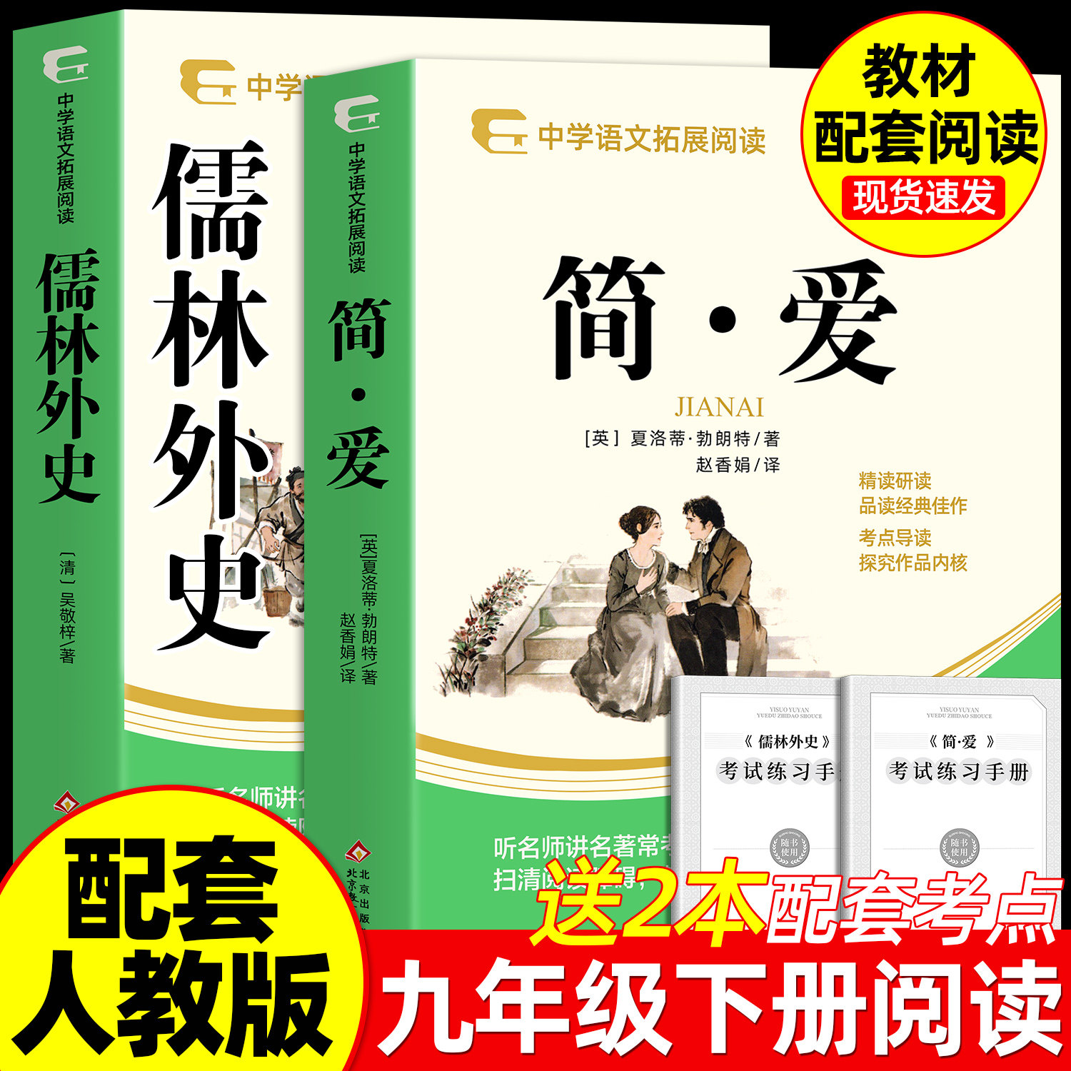 📚 简爱和儒林外史九年级必读正版原著配套人教版教材 初三下册课外阅读书籍初中生九下的课外书名著语文书目阅读小说书籍9年级上下册
