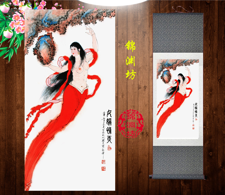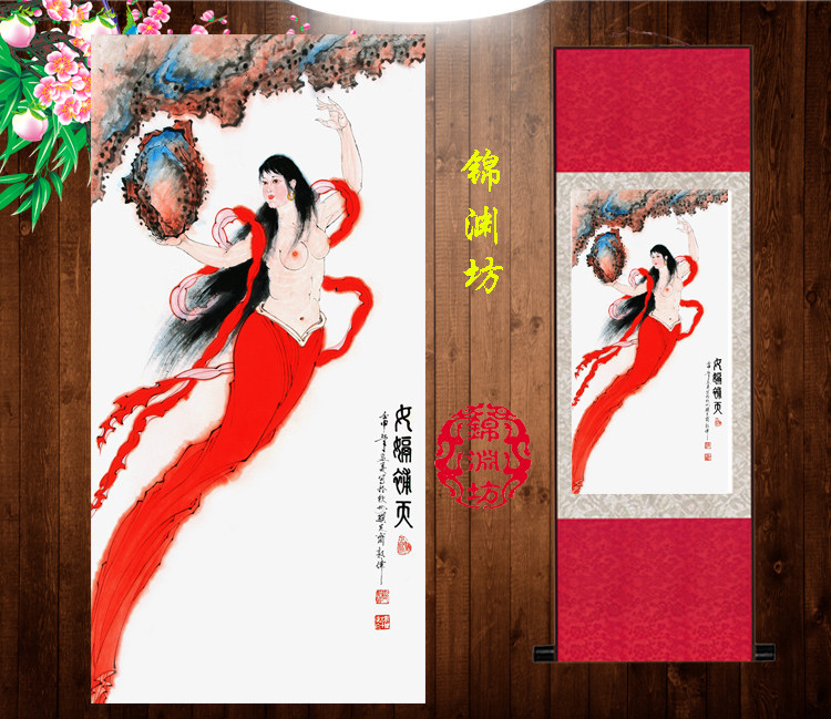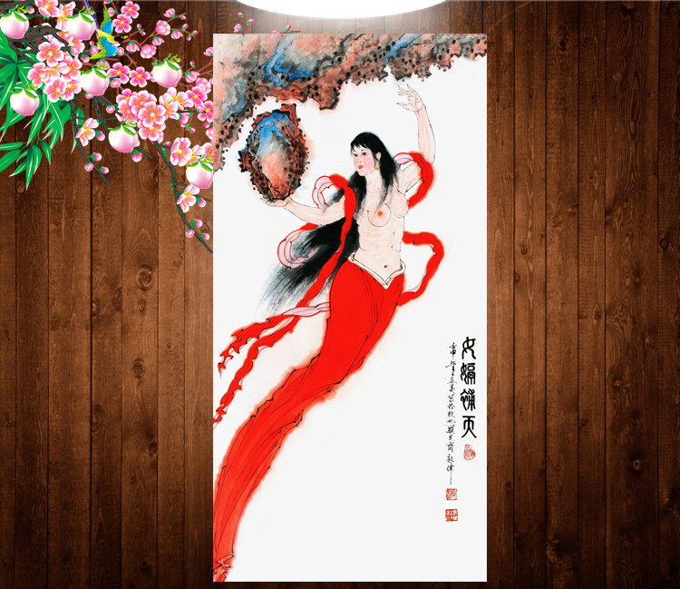 📚 女娲补天画像挂图世女神画丝绸画神仙卷轴画挂画国画女娲补天挂画