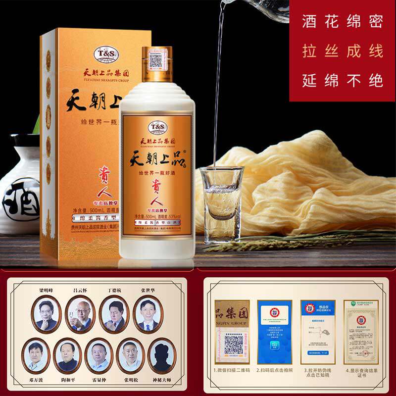 📚 贵州天朝上品新贵人酒绵柔单瓶装白酒酱香型53度送礼纯粮酿造整箱
