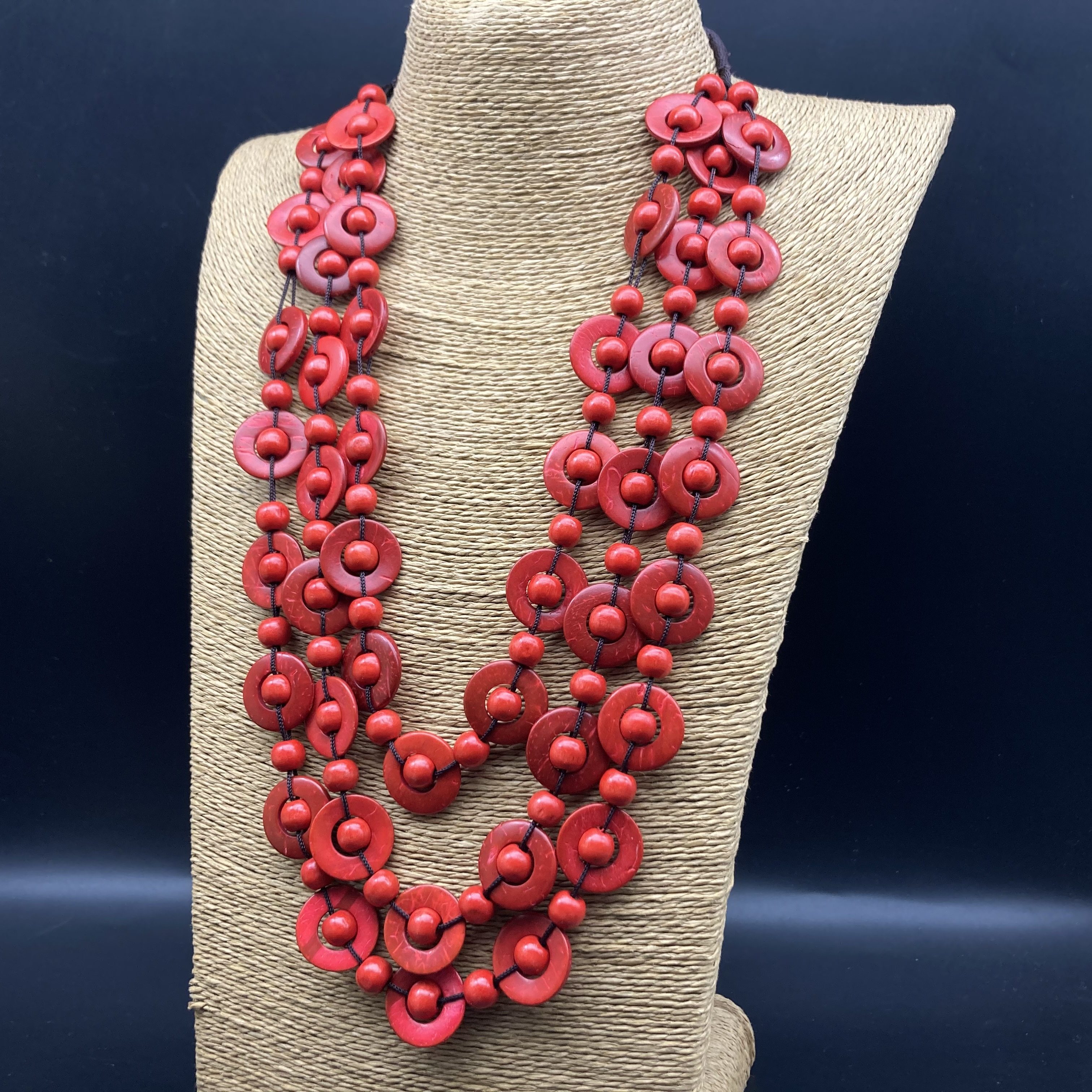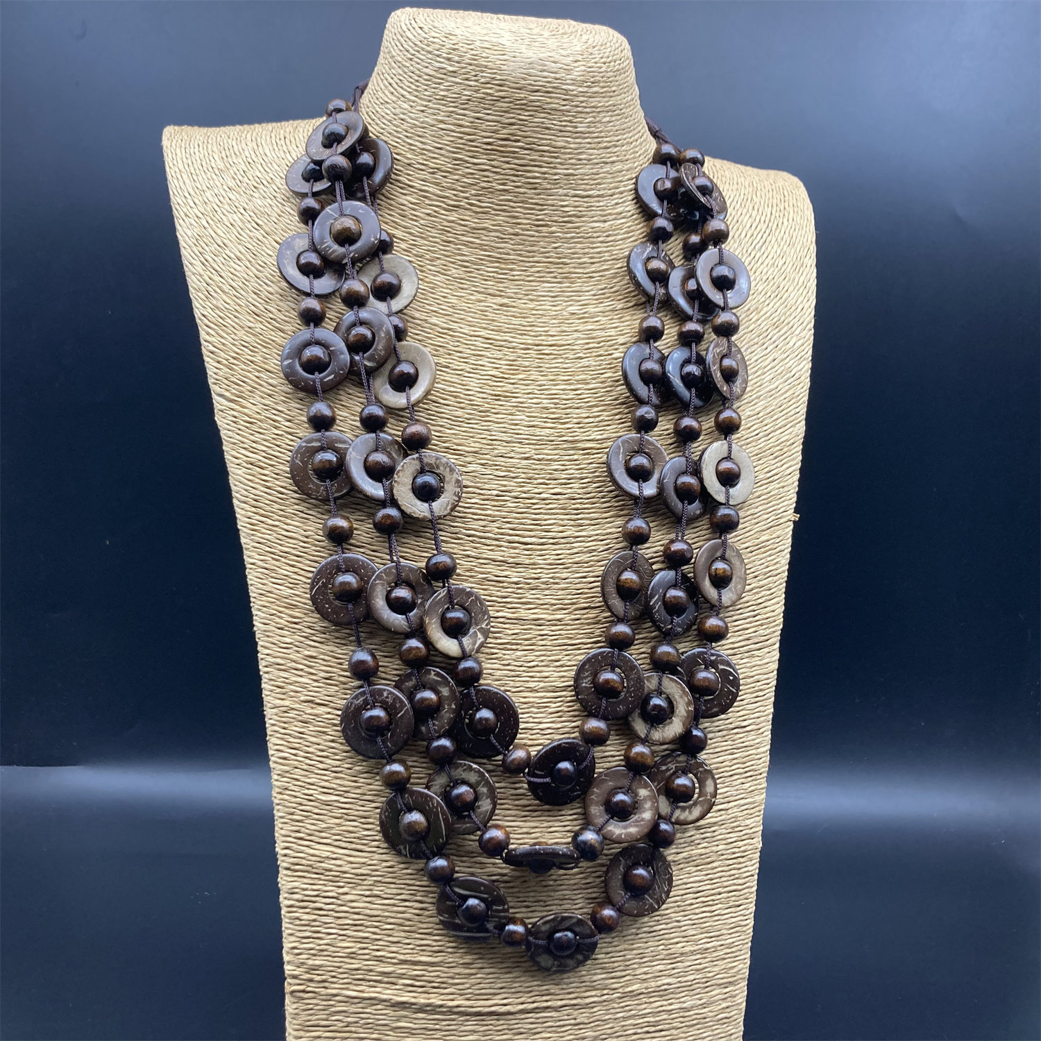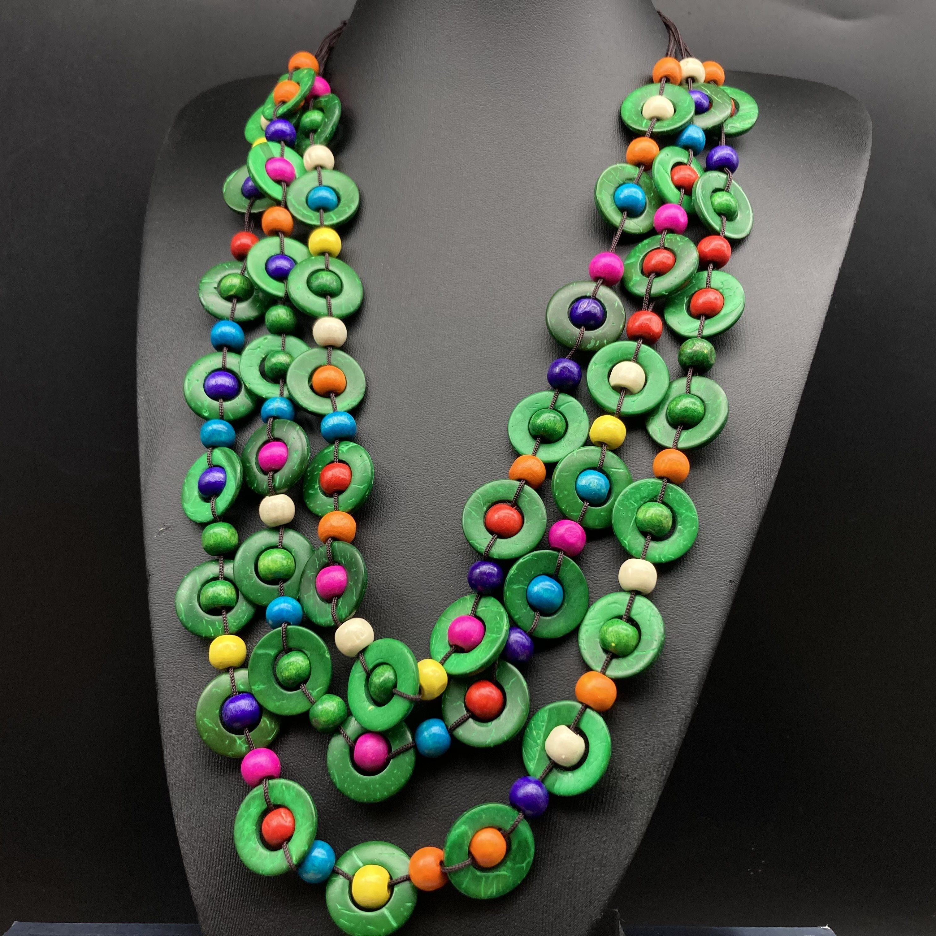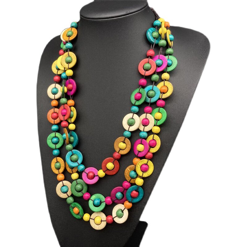 📚 民族风手工多层彩色木珠项链棕色配饰日常毛衣链简约百搭necklace