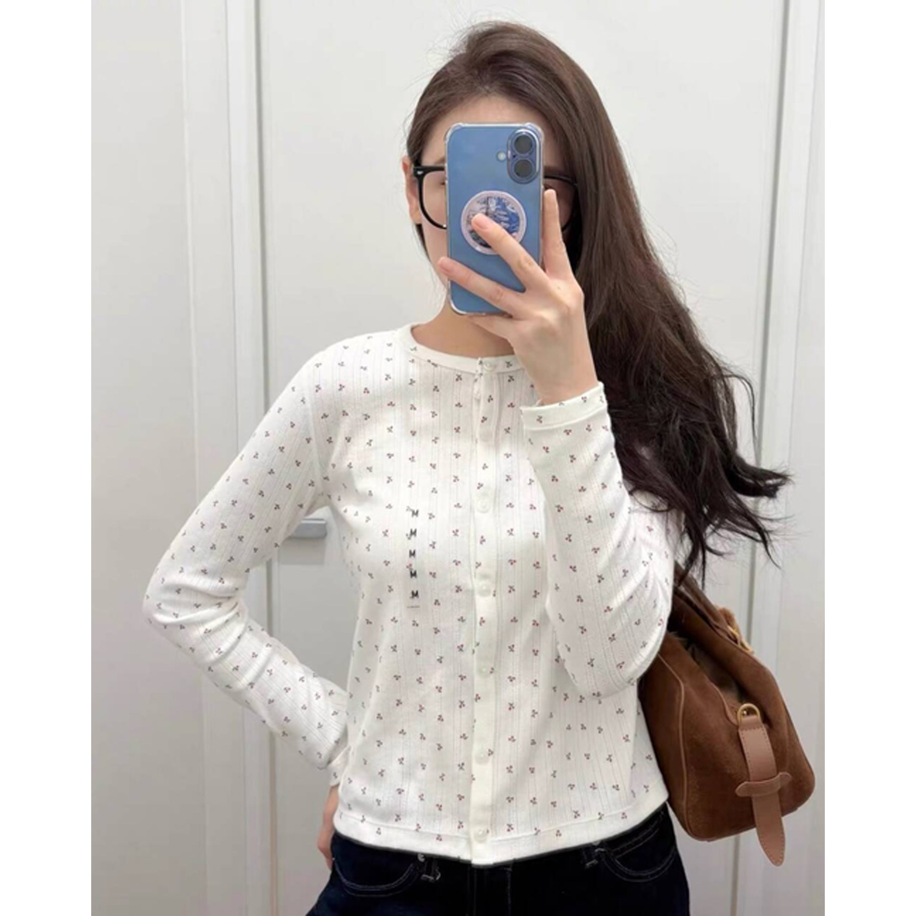 📚 新款女装提花罗纹印花开衫长袖打底衫小碎花开衫春485717 484939