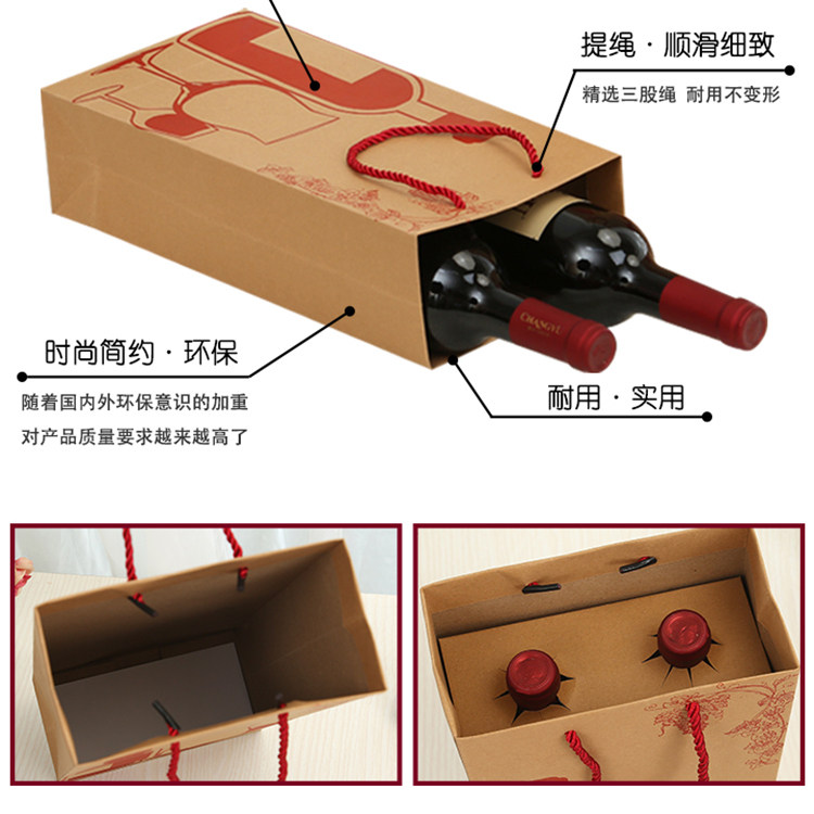 📚 高档红酒手提袋葡萄酒购物礼品袋烟酒礼袋牛皮纸袋定制印刷包装袋