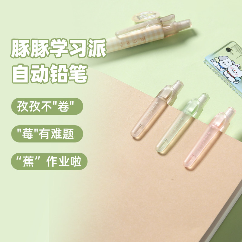 📚 晨光豚豚学习派0.5自动铅笔学生0.7考试绘图铅笔带橡皮头AMP810X6