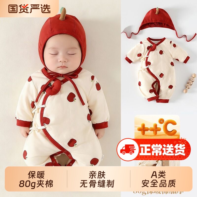 📚 哇哇新生婴儿衣服秋冬款薄棉服宝宝夹棉连体衣棉服外出服超萌新年