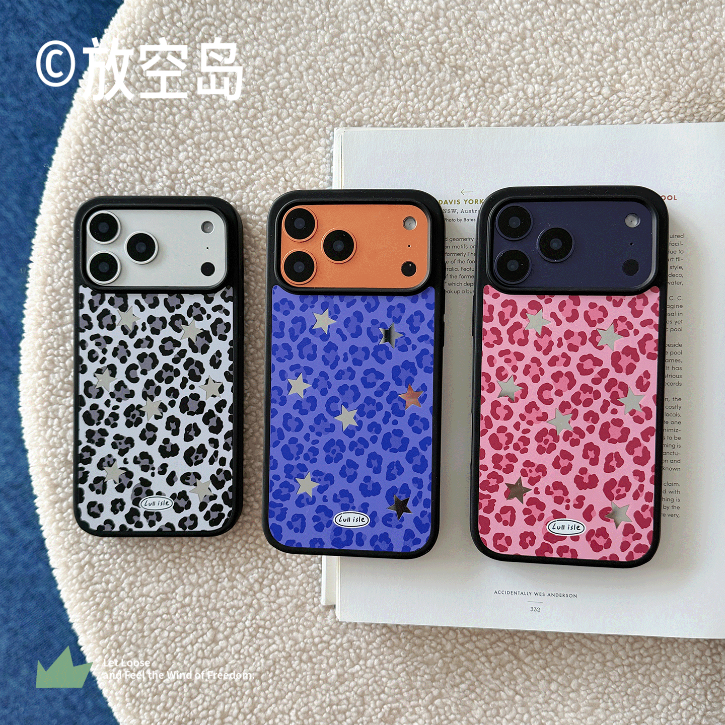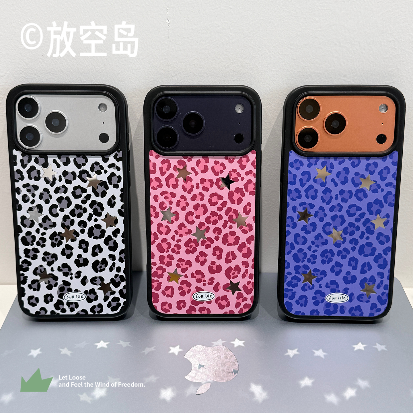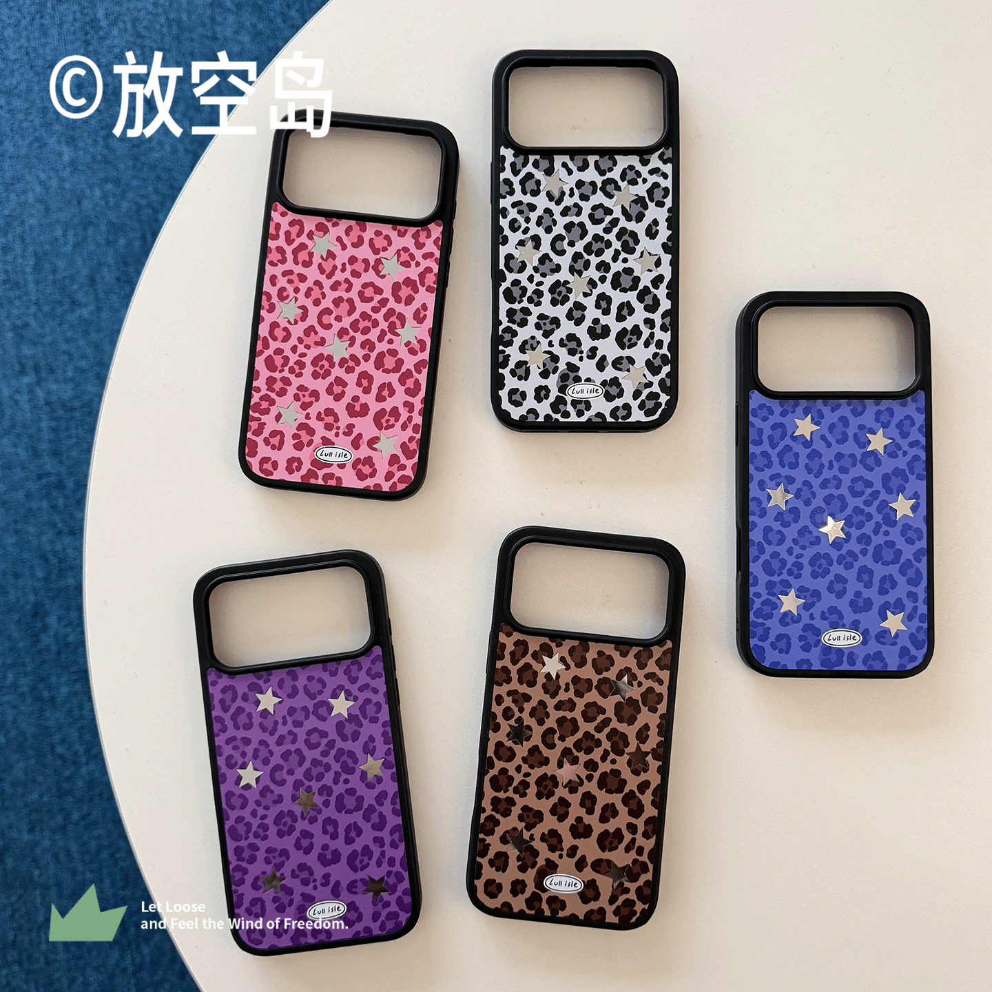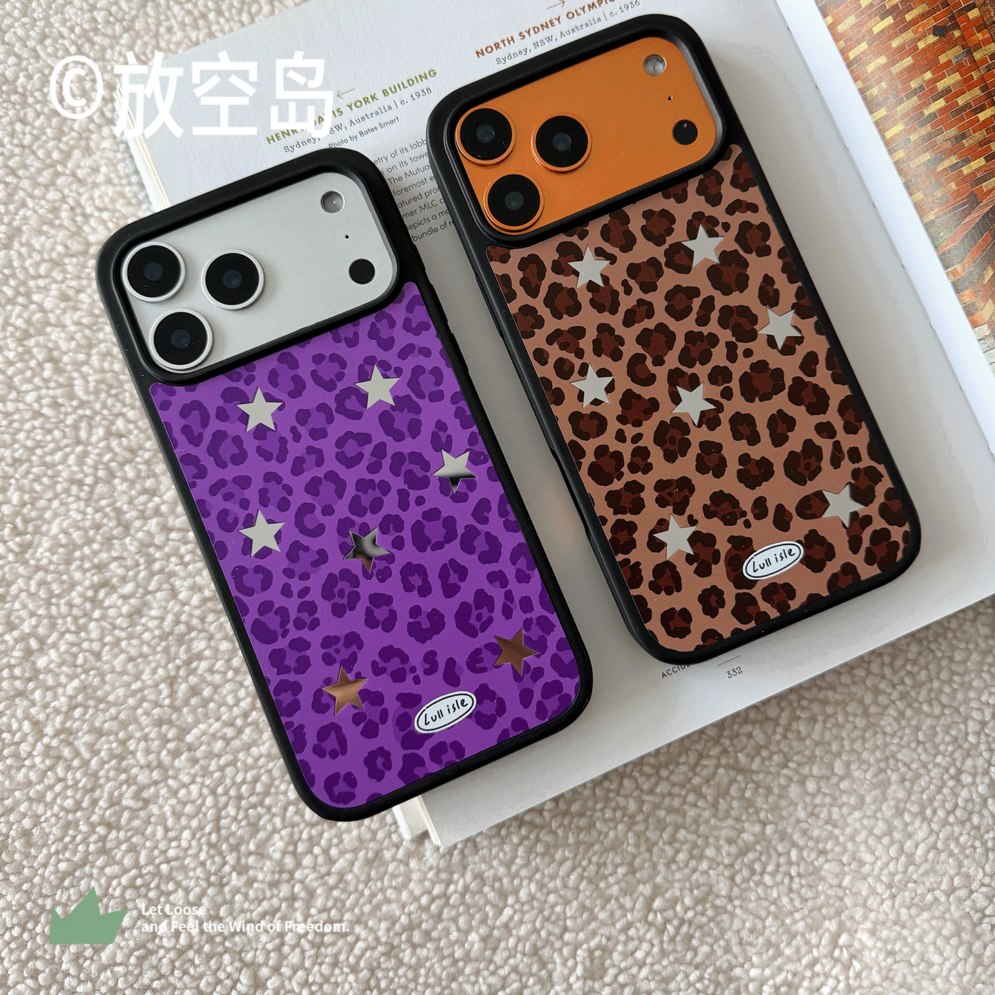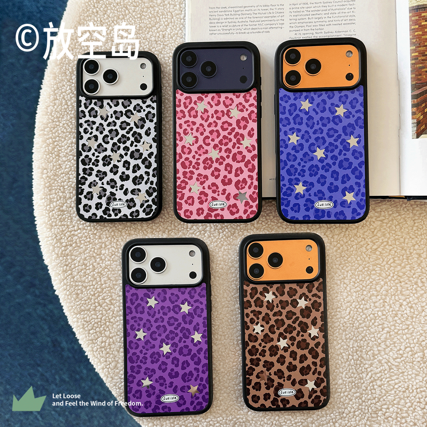 📚 放空岛正版原创丨<豹纹星星>粉色蓝色紫色黑白色棕色黑边镜面磨砂磁吸手机壳小众设计高级感iPhone17promax