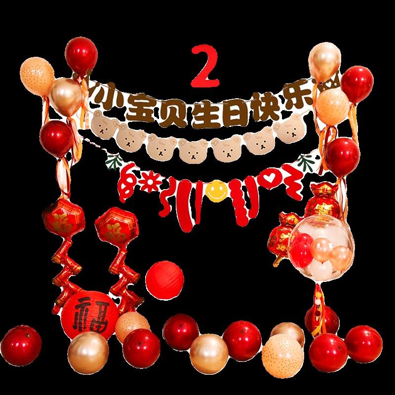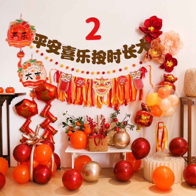 📚 精选兔宝宝一周岁生日气球布置中式抓周礼背景墙派对拍照道具场景