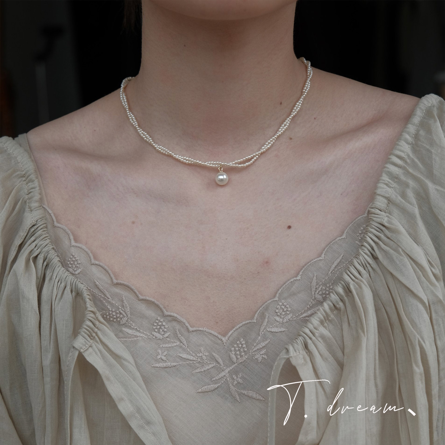 📚 《邂逅优雅》奶油珍珠双层叠戴项链女高级锁骨链小众设计2026新款