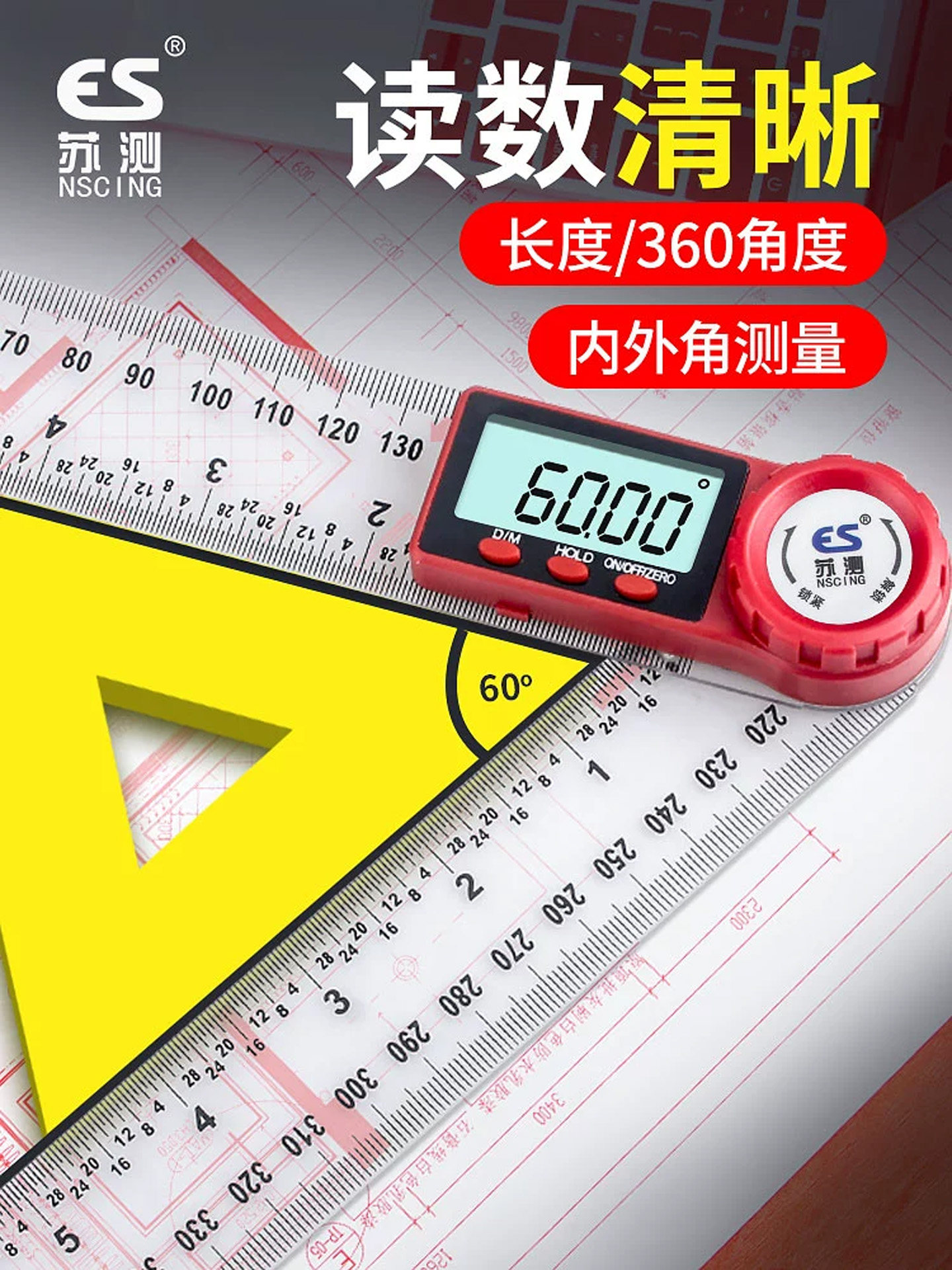 📚 苏州数显量角尺木工方尺数显量角尺不锈钢高精度车削尺多功能90度