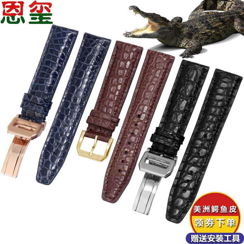 📚 适配IWC万国鳄鱼皮手表带柏涛菲诺飞行员葡萄牙7计时牛皮底男表链