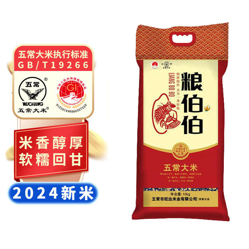 📚 粮伯伯 五常大米20斤黑龙江原粮稻花香2号东北大米2024年新米包邮