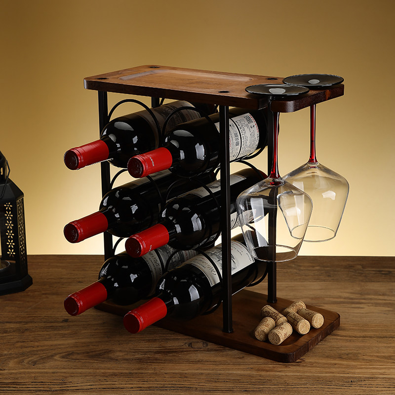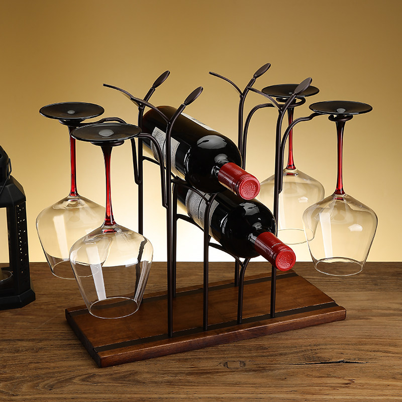 📚 创意实木红酒架子倒挂高脚杯架高档葡萄酒瓶架酒柜展示架家用摆件