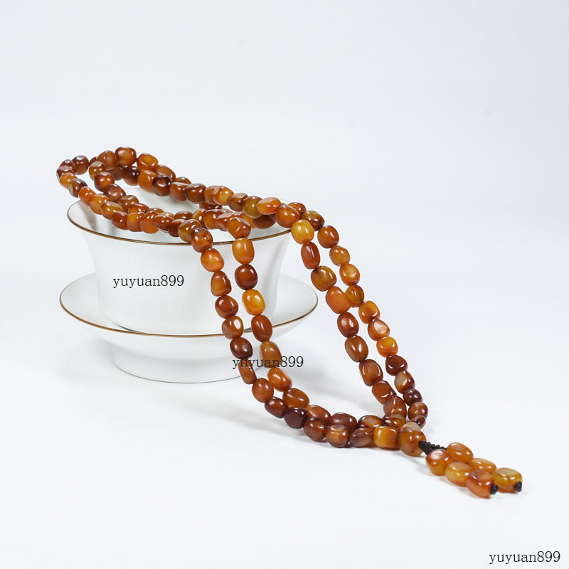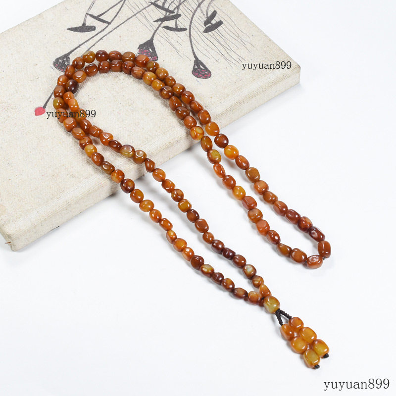 📚 新疆和田玉籽料原石红沁皮108颗8MM多圈手链手串单圈项链佛珠籽玉