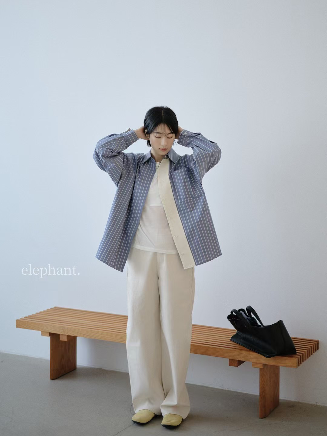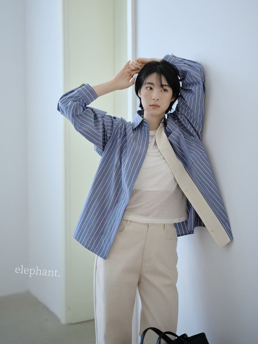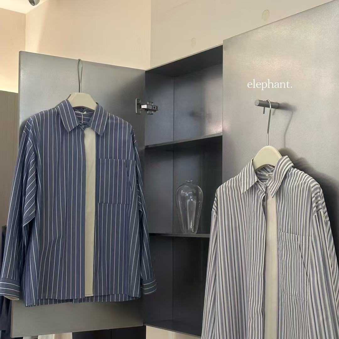📚 2025新款新款韩系elephant大象家简约气质撞色包边条纹衬衫女