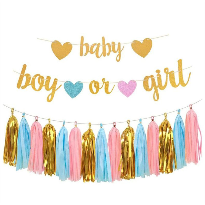 📚 boy or girl性别揭示字母气球装饰婴儿男女揭秘雨丝帘背景墙布置