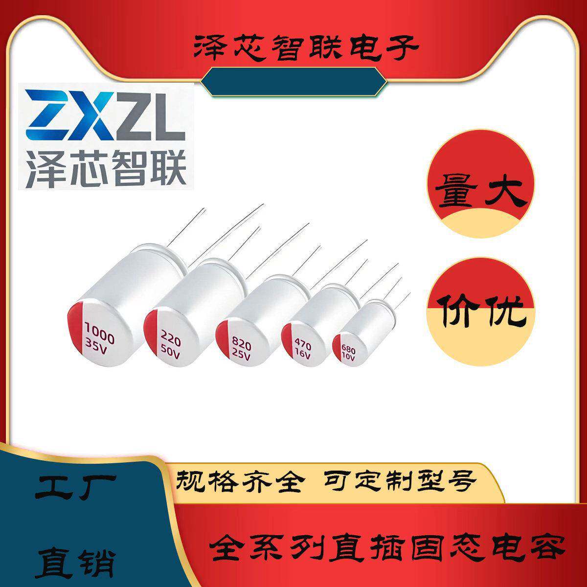 📚 直插固态电容器6.3v10v16v25v35v50v63v/100 220 470 680 1000uf