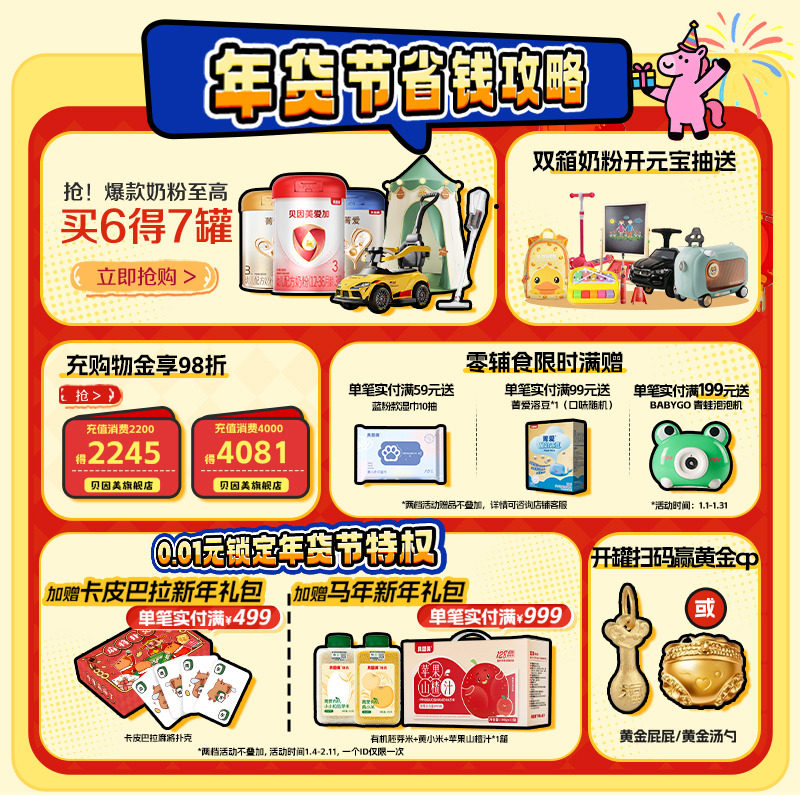 📚 【囤奶卡4500g】贝因美红爱666儿童4段奶粉含HMO母乳低聚糖