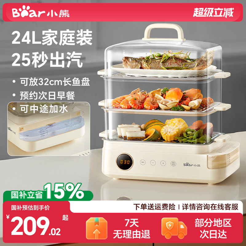 📚 小熊电蒸锅家用多功能三层不锈钢大容量电蒸箱保温定时预约早餐机
