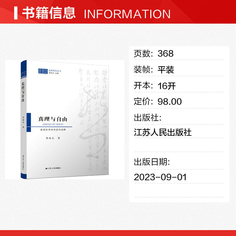 📚 真理与自由 康德哲学的存在论阐释 黄裕生 江苏人民出版社 正版书籍 新华书店旗舰店文轩官网