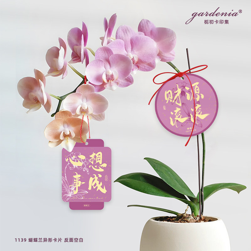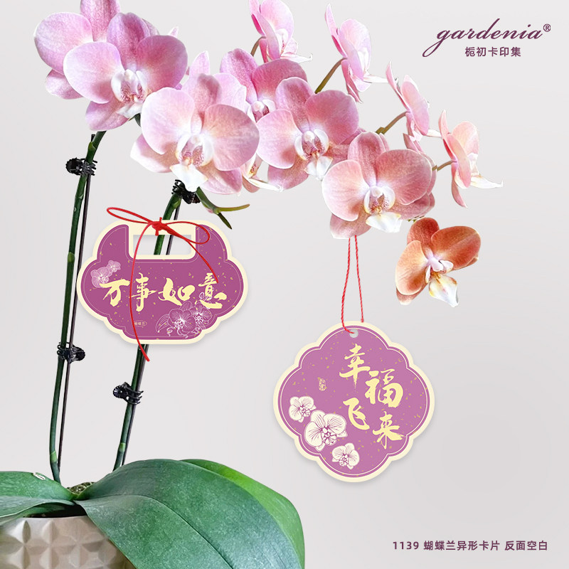 #幸福飞来 #蝴蝶兰异形吊牌 #紫色年宵花盆栽 #鲜花绿植装饰卡片 #春节好物