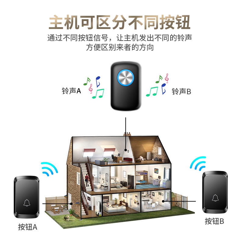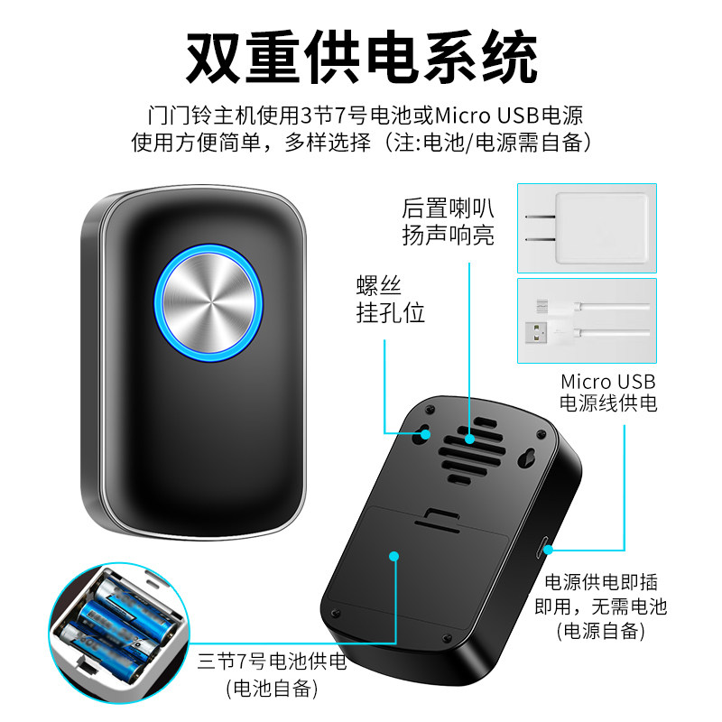 📚 门铃无线家用电池款直流小简易室外防水不插电电子门玲遥控钤简单