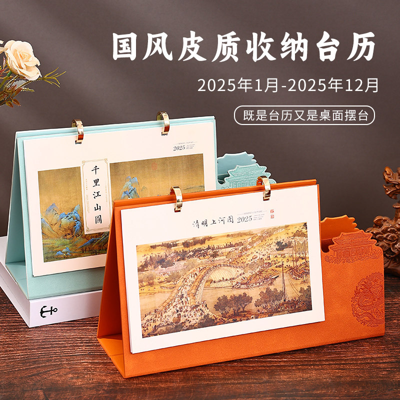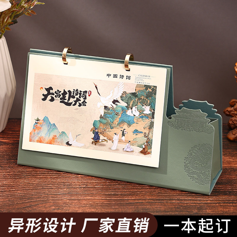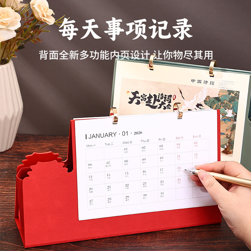 📚 古风日历2026年台历新款高档皮质桌面摆件企业送礼月历礼盒装国风日历订做办公记事日程安排公司品牌logo定制