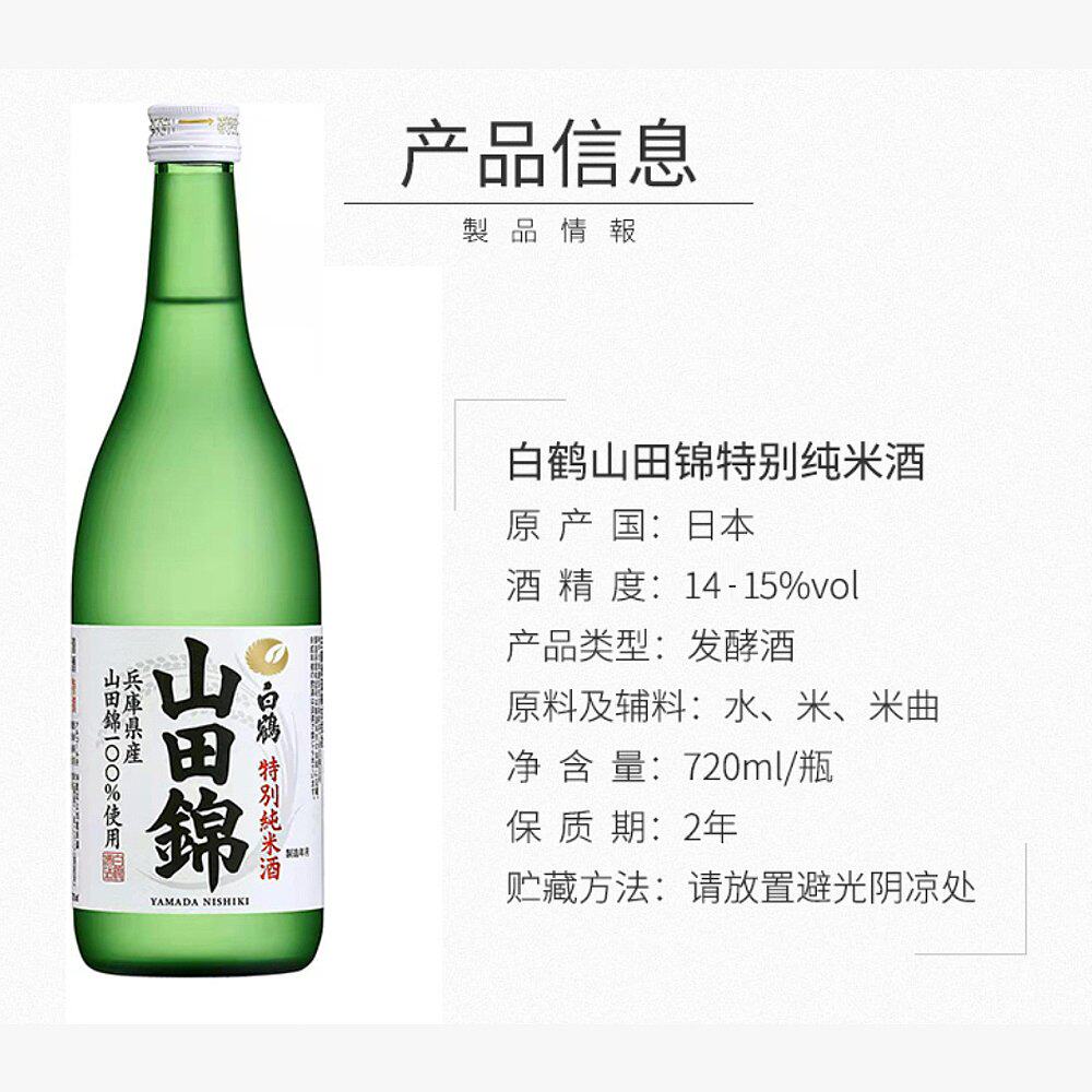 📚 日本直邮白鹤特选山田锦精米发酵清酒淡丽纯米日式清酒720ml