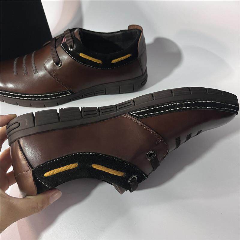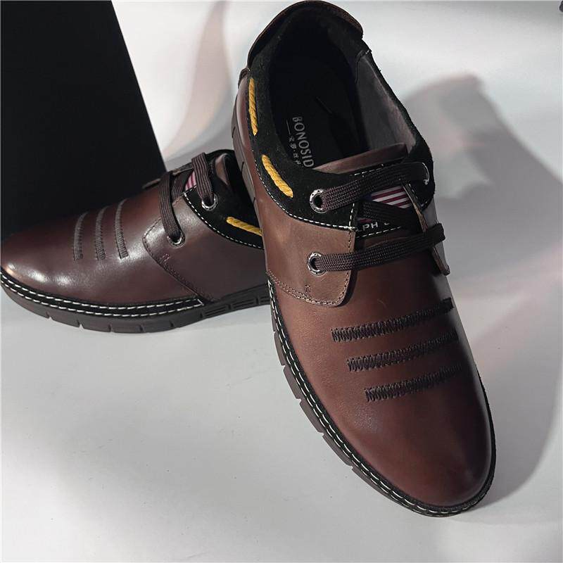 📚 宝罗丝丹 春秋真皮耐磨防滑软底软面日常系带圆头韩版休闲男皮鞋