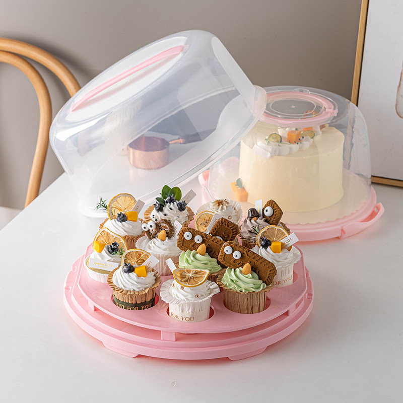 📚 生日蛋糕盒可重复使用加高便携手提透明纸杯打包盒子6/8/10寸家用