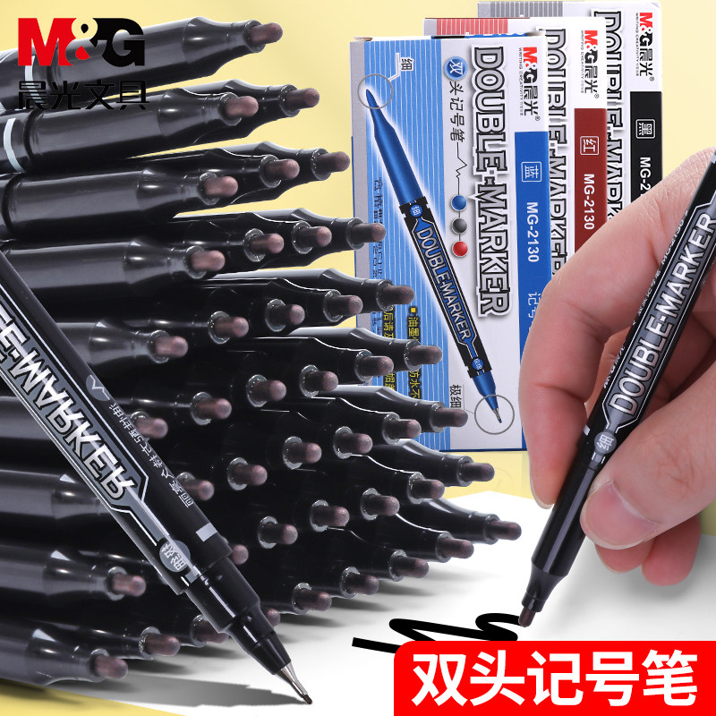 📚 晨光小双头油性记号笔马克笔儿童绘画勾线笔大头笔黑色描线描边勾边笔小头细头批发划线笔速干防水笔不易褪色