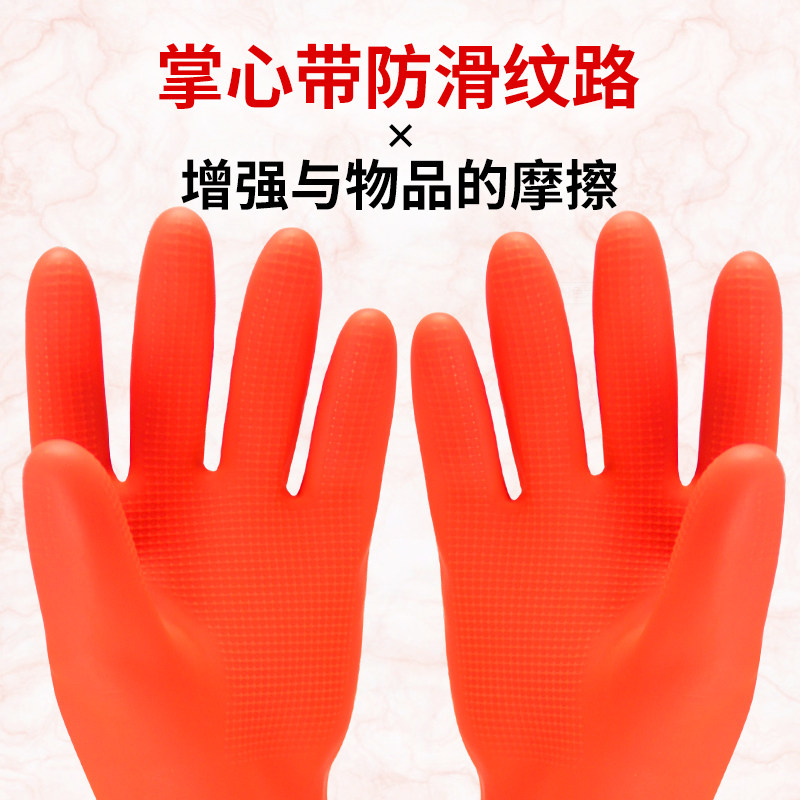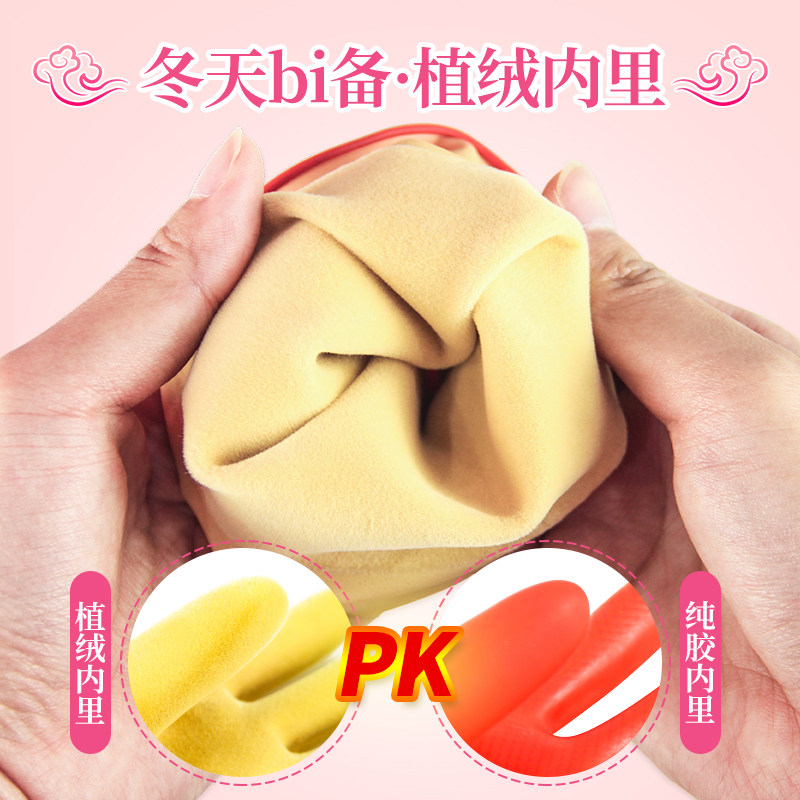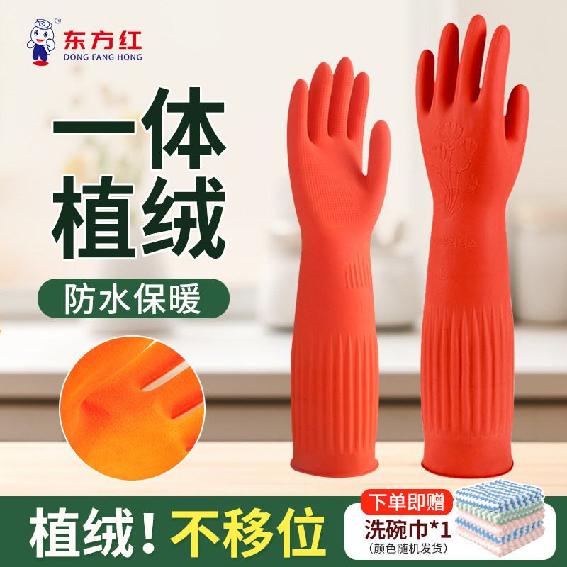 📚 东方红橡胶加长家务保暖植绒手套厨房清洁洗碗洗衣防水乳胶加绒