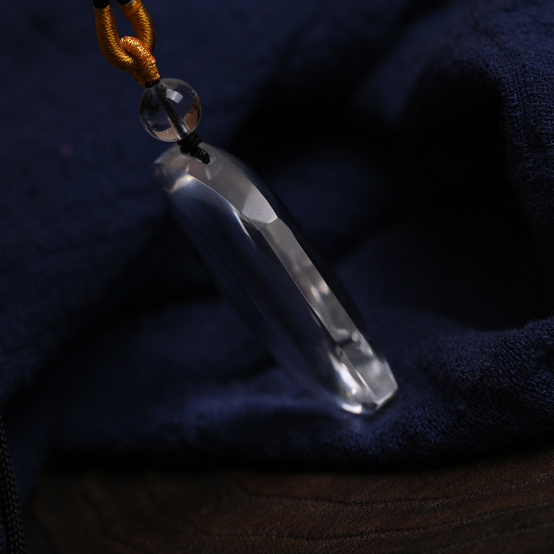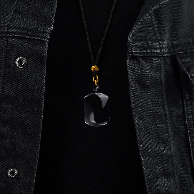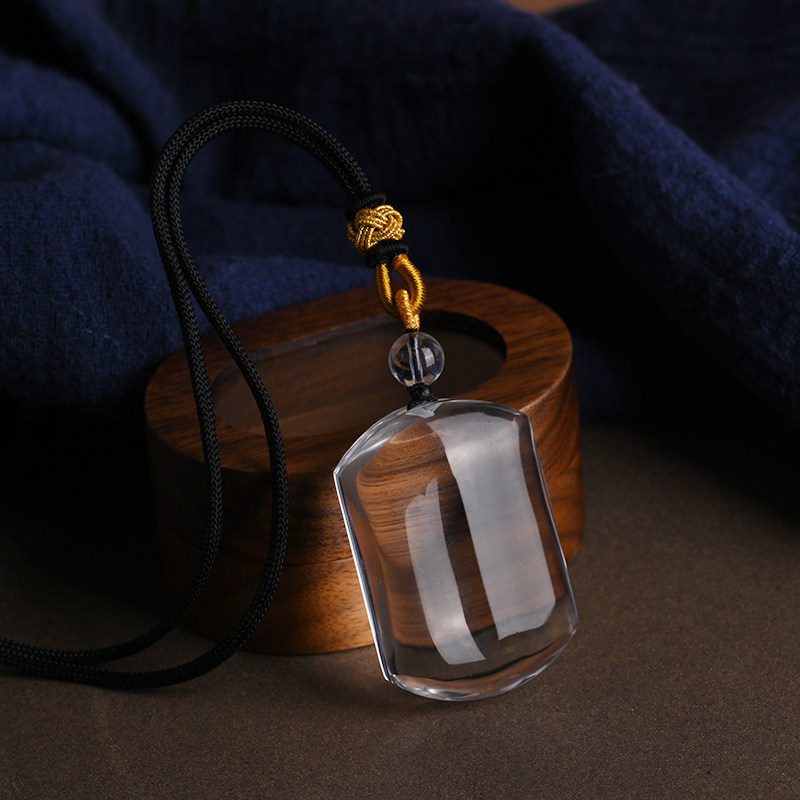 📚 珍藏冰透体天然白水晶无事牌吊坠男女项链白水晶挂件五行属金喜金