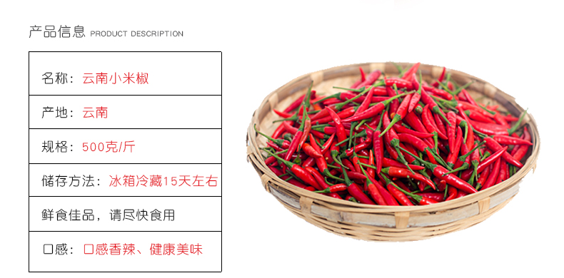 🔥云南德宏辣椒狂欢!超辣朝天椒小尖椒500克红米椒装,券后价亲民!