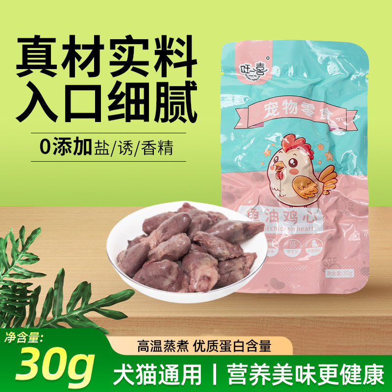 📚 旺二喜蒸煮鱼油熟鸡心猫咪狗狗吃的宠物零食水煮猫狗爱鸡心增肥