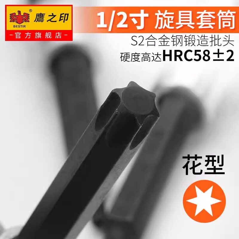 📚 鹰之印 1/2寸大飞花型旋具套筒头 S2内六角套筒批头快速扳手工具