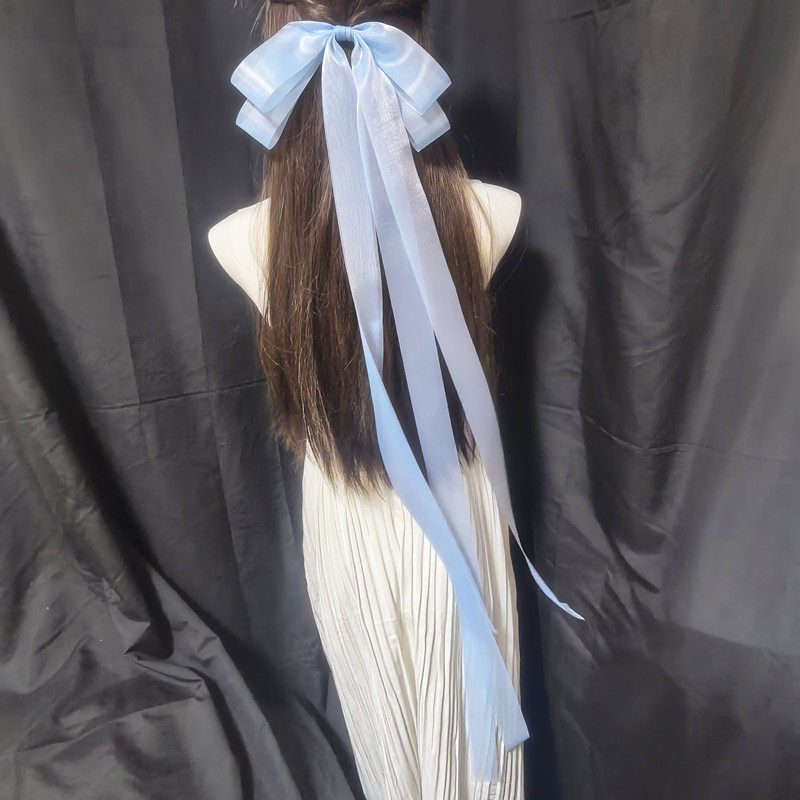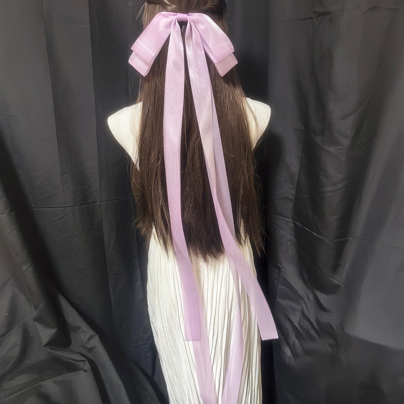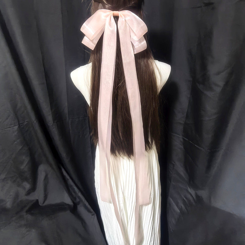 📚 古风红色蝴蝶结长飘带发夹丝带弹簧夹后脑勺头饰薄纱发饰少女感
