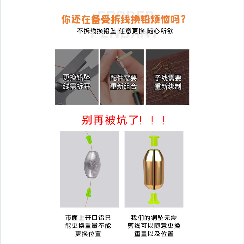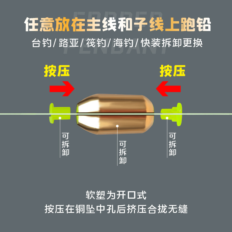 📚 开口铜坠快速通心铅坠铜水中海钓矶钓筏钓铅坠免拆线路亚中通配件