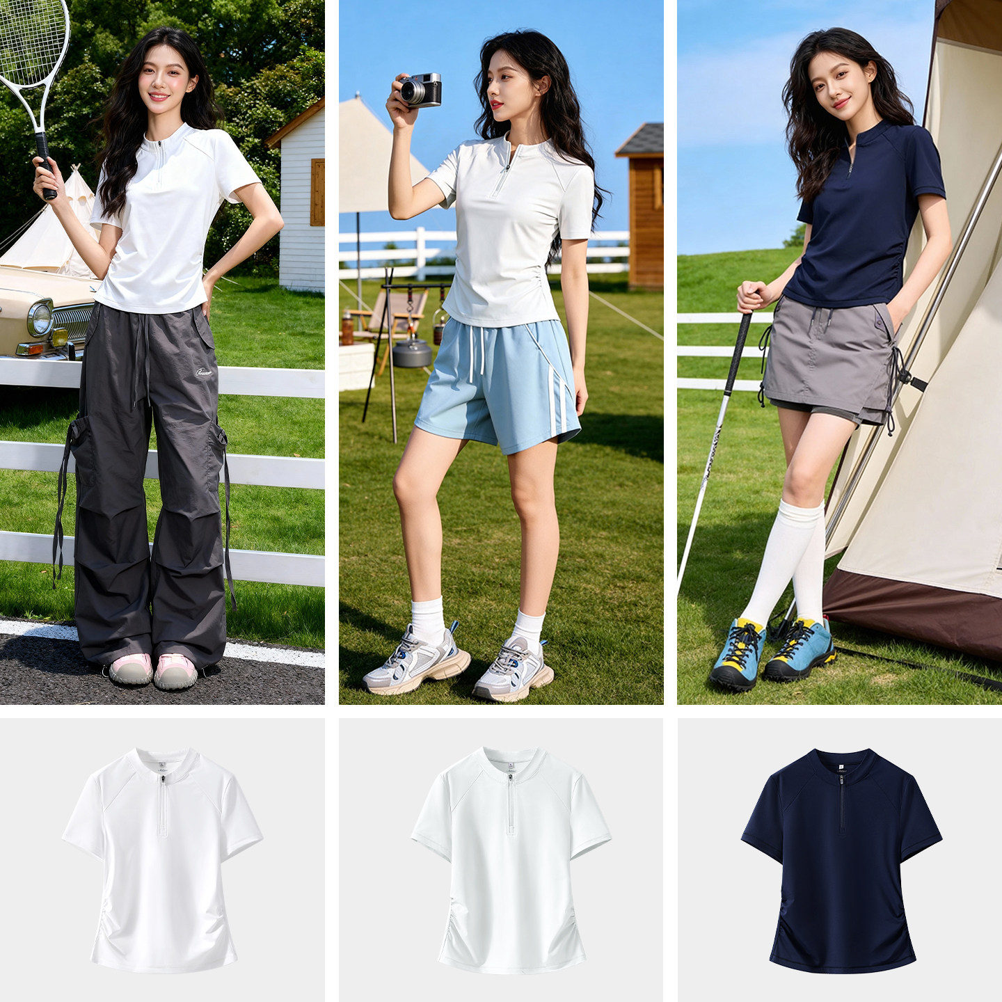📚 班尼路白色半拉链速干t恤女短袖夏2026新款修身健身跑步运动上衣H