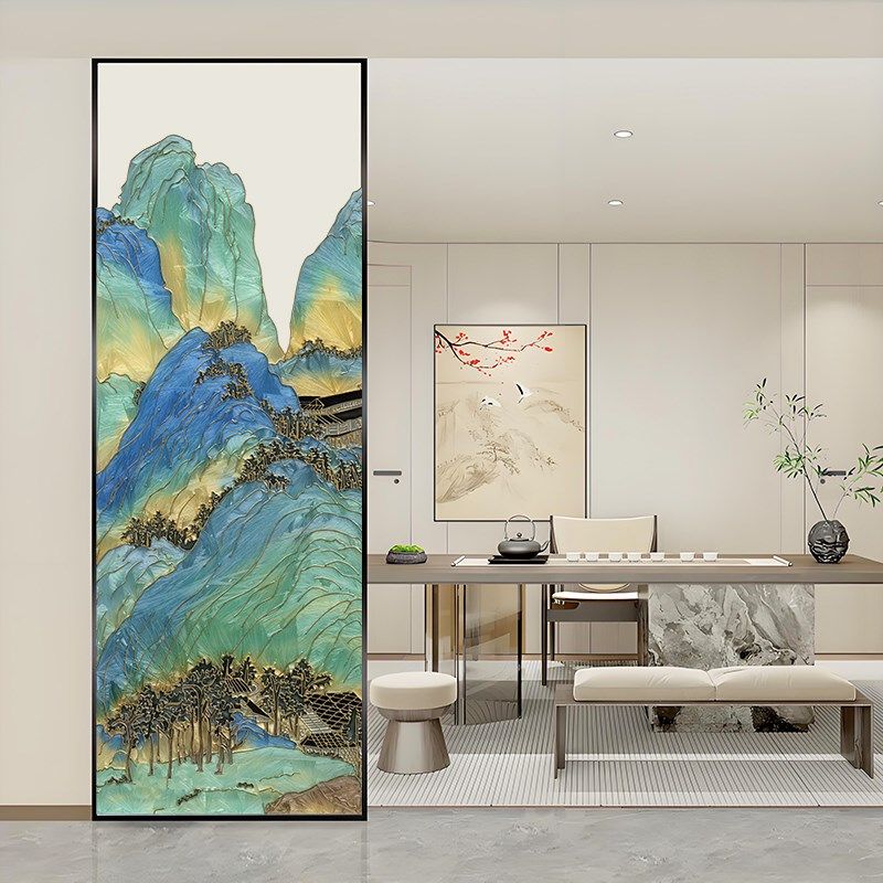 📚 U打印艺术玻璃彩釉油墨画玻璃隔断仿珐琅彩热熔门窗屏风玄关装饰