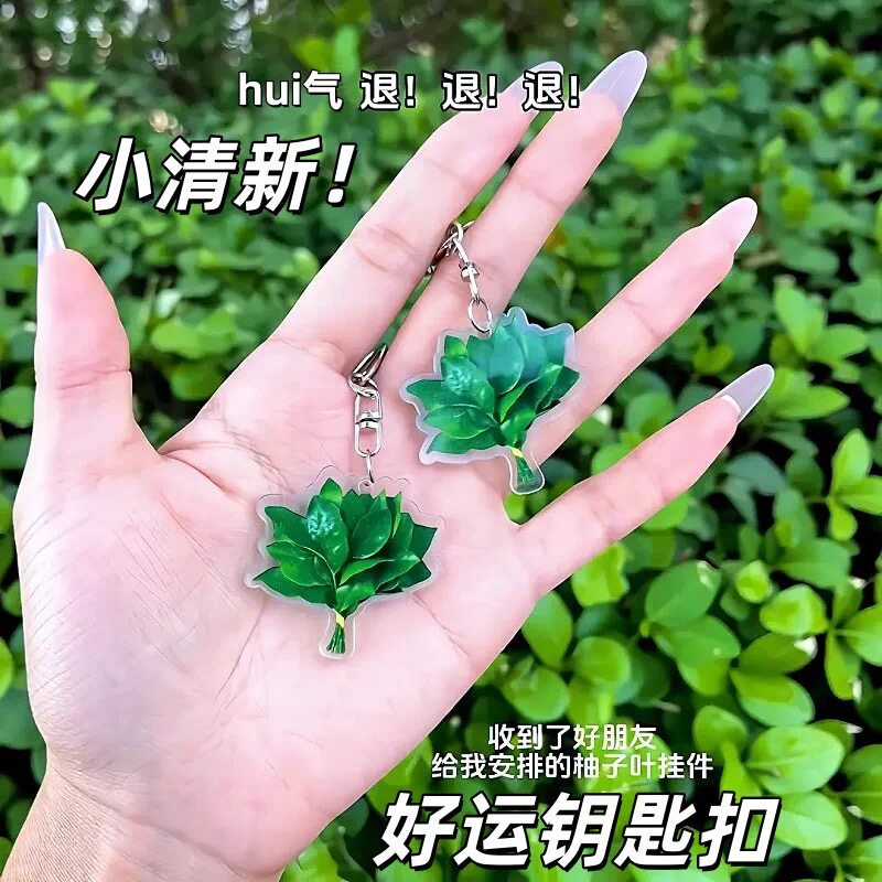 📚 去晦气专用柚子叶小挂件亚克力钥匙扣创意书包挂饰送朋友节日礼物
