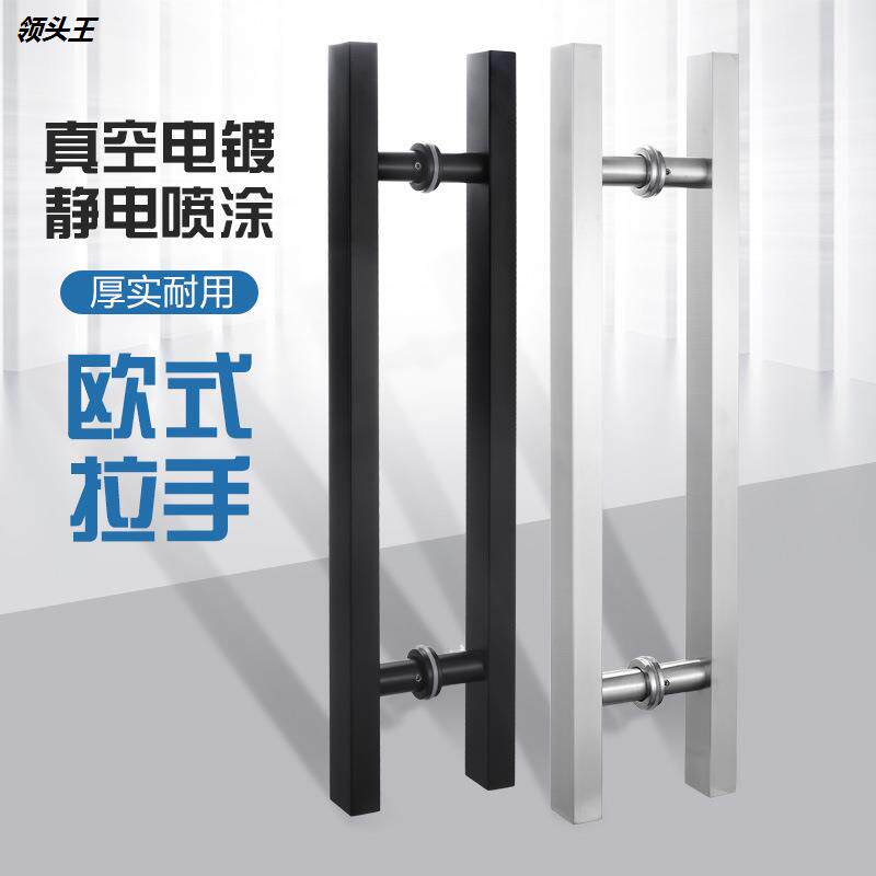 📚 玻璃门拉手不锈钢黑色门把手方管推拉门地弹门KTV大门大拉手厂家