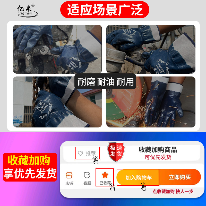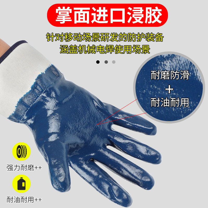 📚 工业挂胶浸胶耐油防油手套机械修理电焊劳保手套薄款丁晴橡胶耐磨