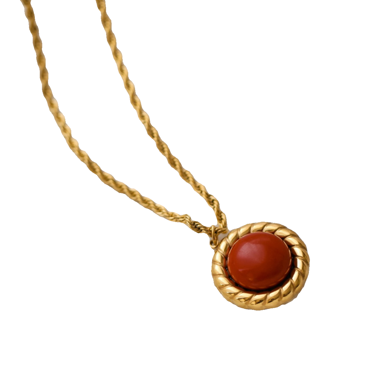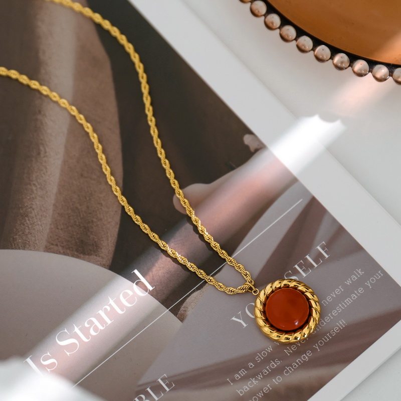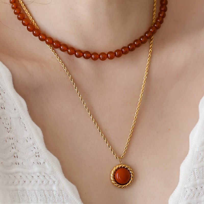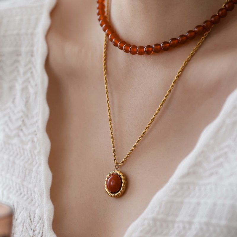 📚 不掉色~复古小众高级天然红松石麻花项链女长款项链秋冬新年配饰