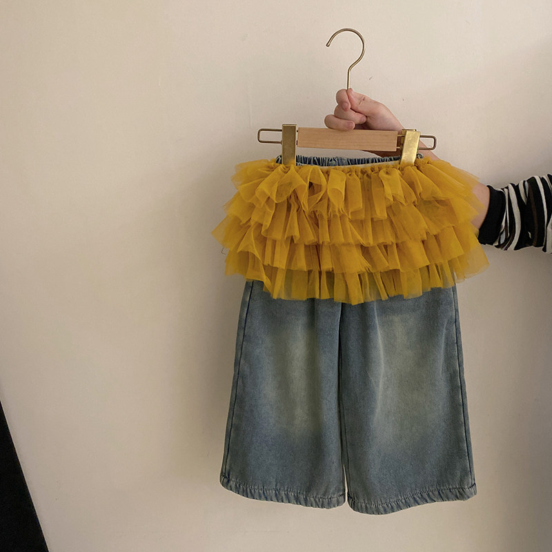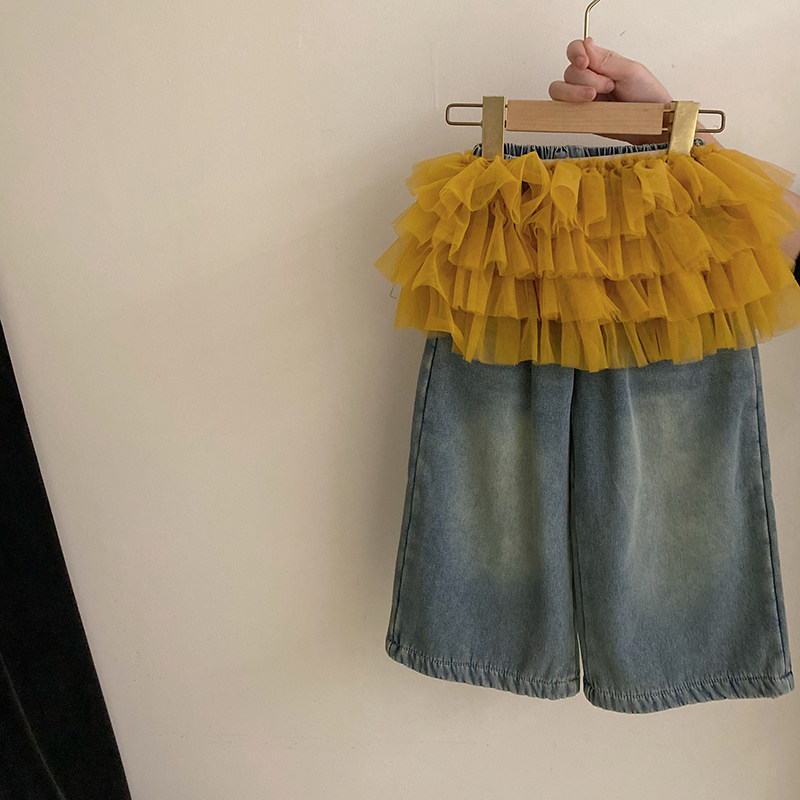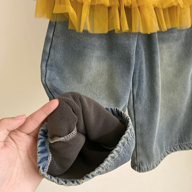 📚 女童冬季新款潮流百搭洋气时尚网纱短裙加绒牛仔裤中小童洋气裤子