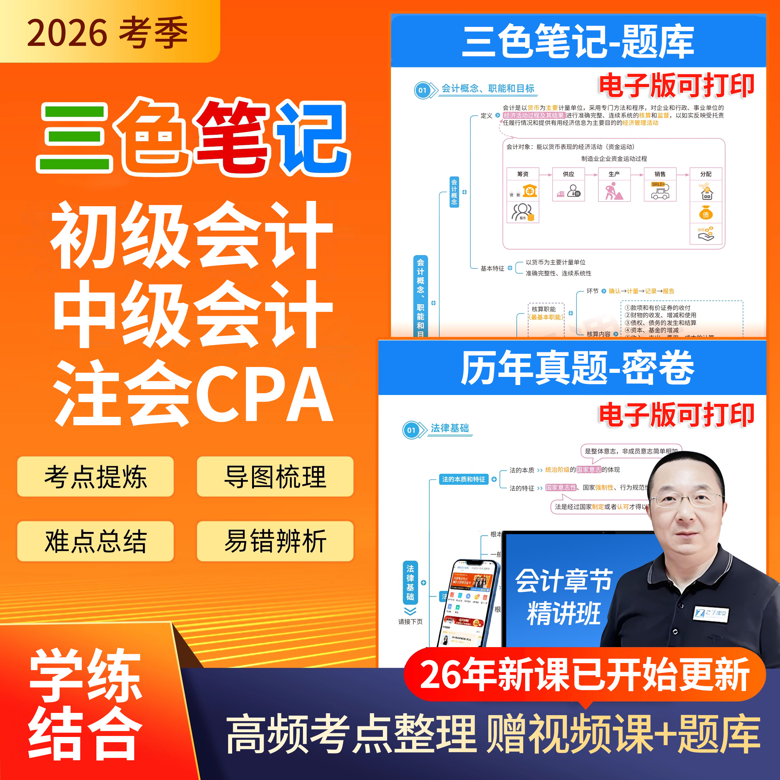 📚 之了课堂2026年初级中级会计网课程cpa注册会计视频马勇三色笔记