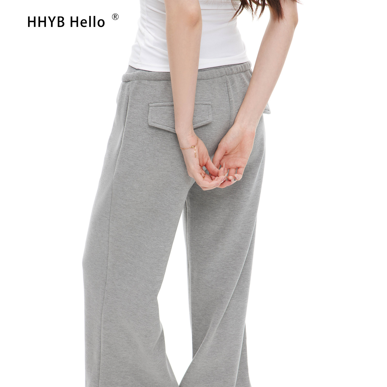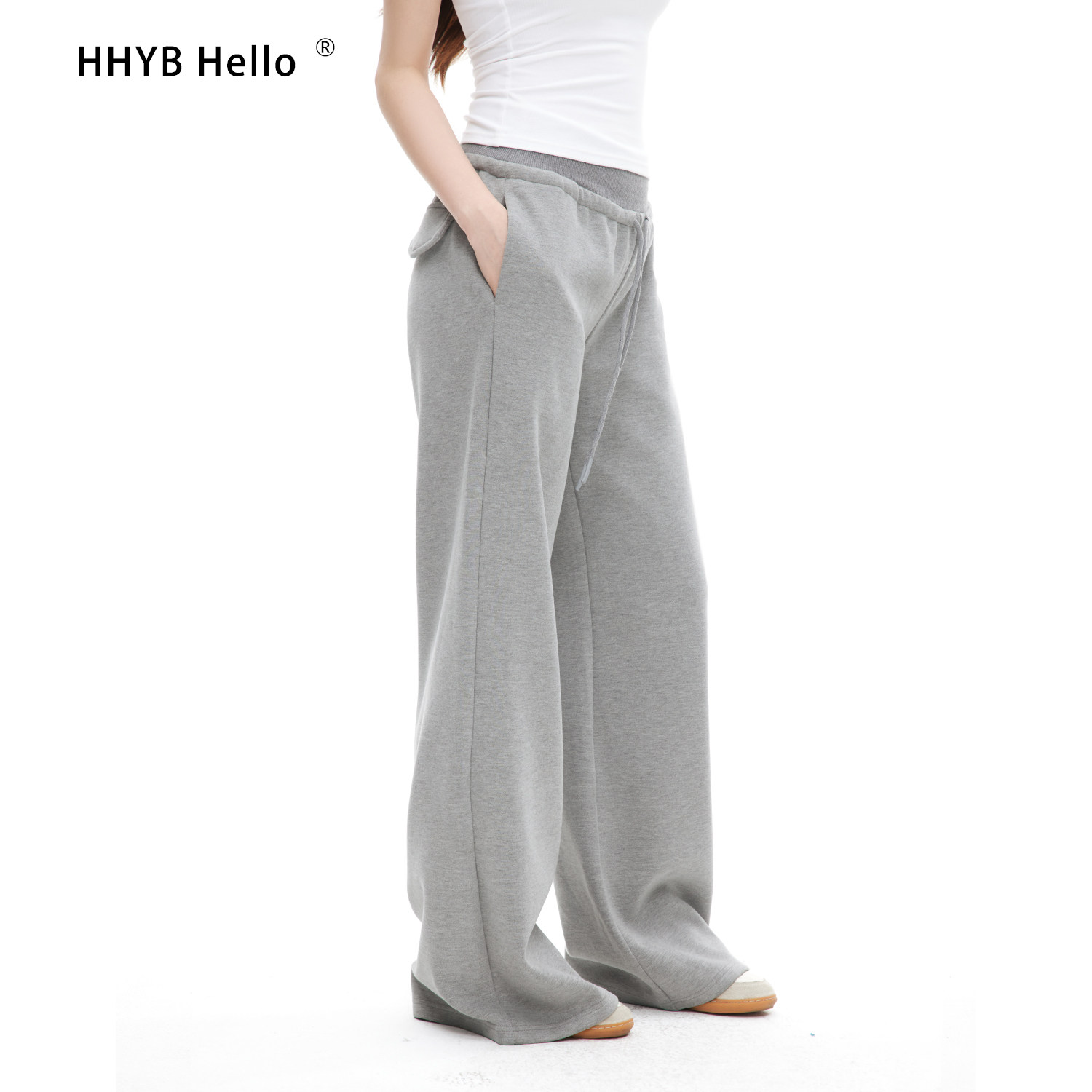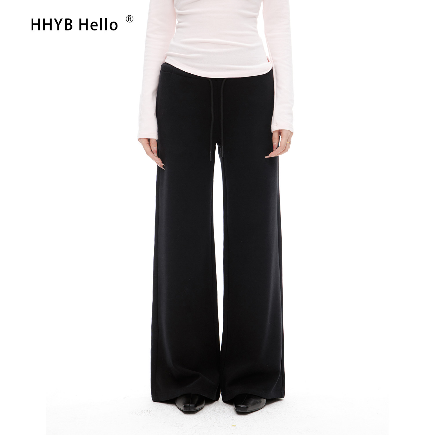 📚 HHYB别来无恙 磨毛宽腰头抽绳休闲卫裤拖地直筒拖地长裤Q244278