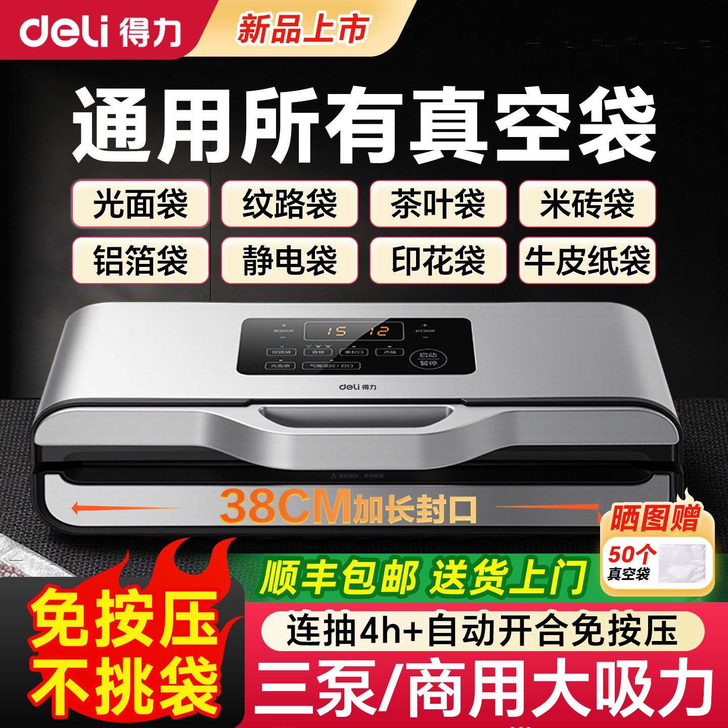 📚 【10月新款】得力不挑袋真空封口机商用大吸力食品包装机干湿通用
