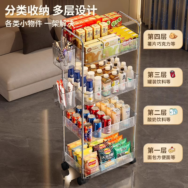 📚 亚克力零食置物架落地移动小推车透明桌下柜多层收纳架客厅书房