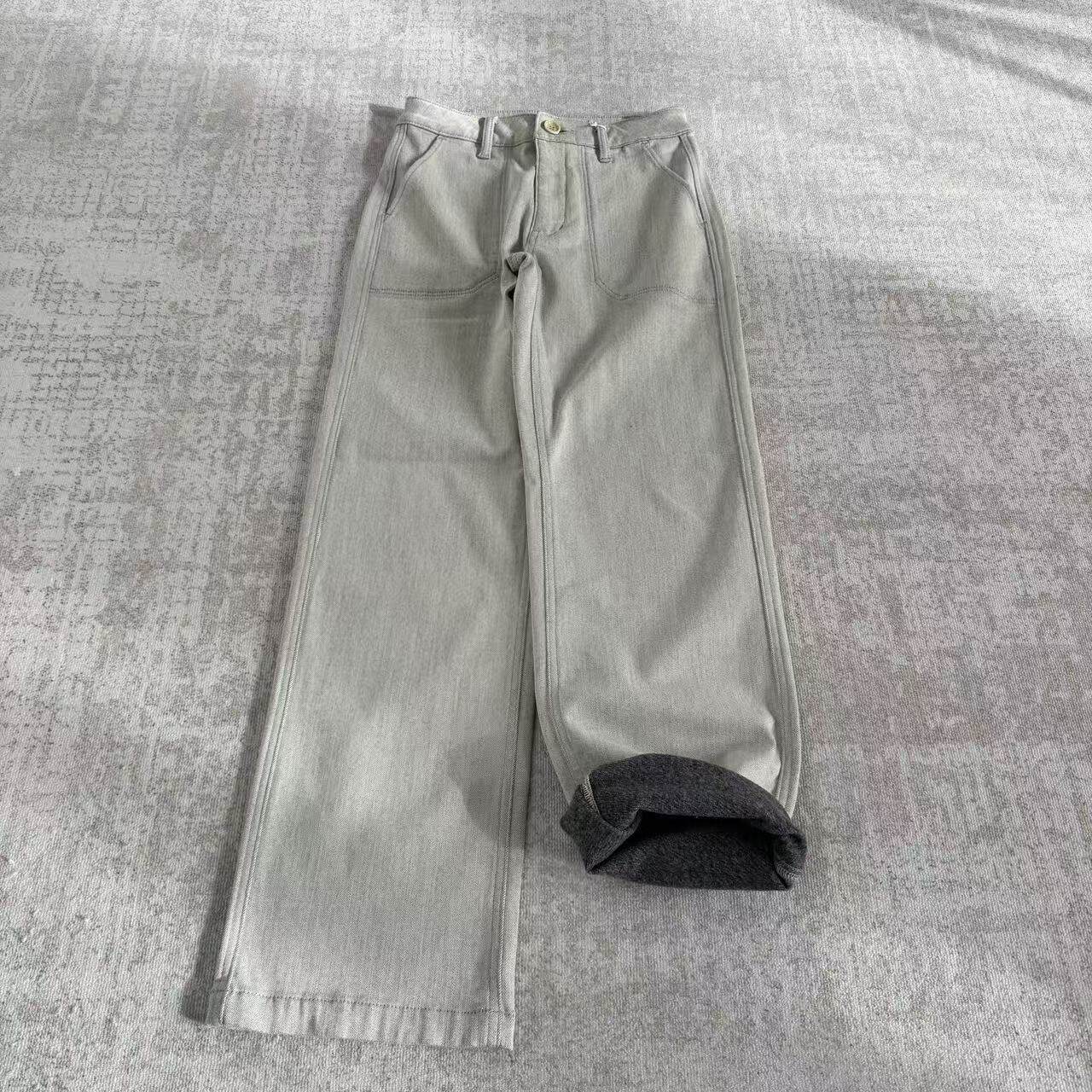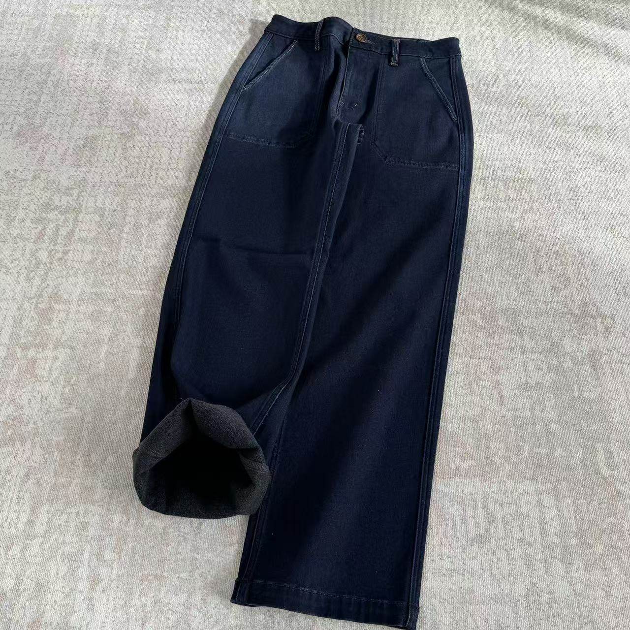 📚 直筒裤加绒长裤高腰休闲裤宽松潮流百搭有弹力牛仔裤25120942
