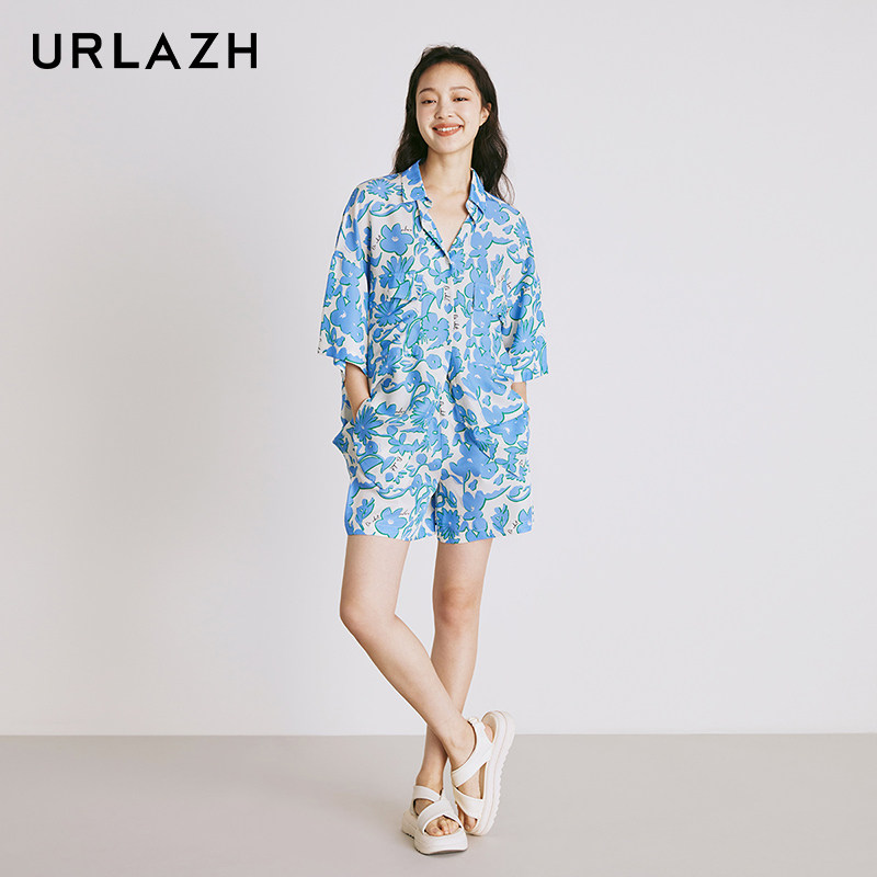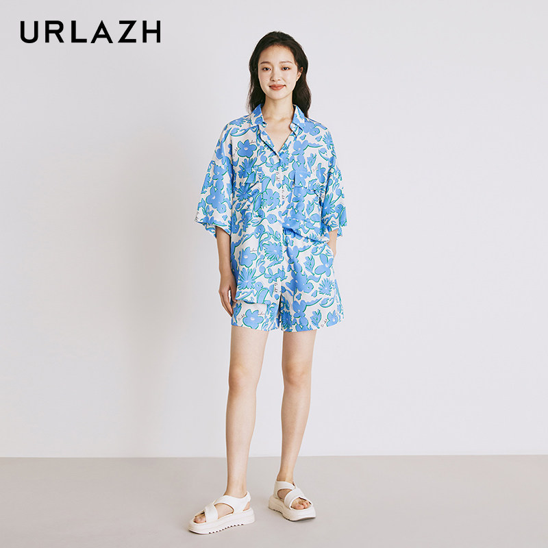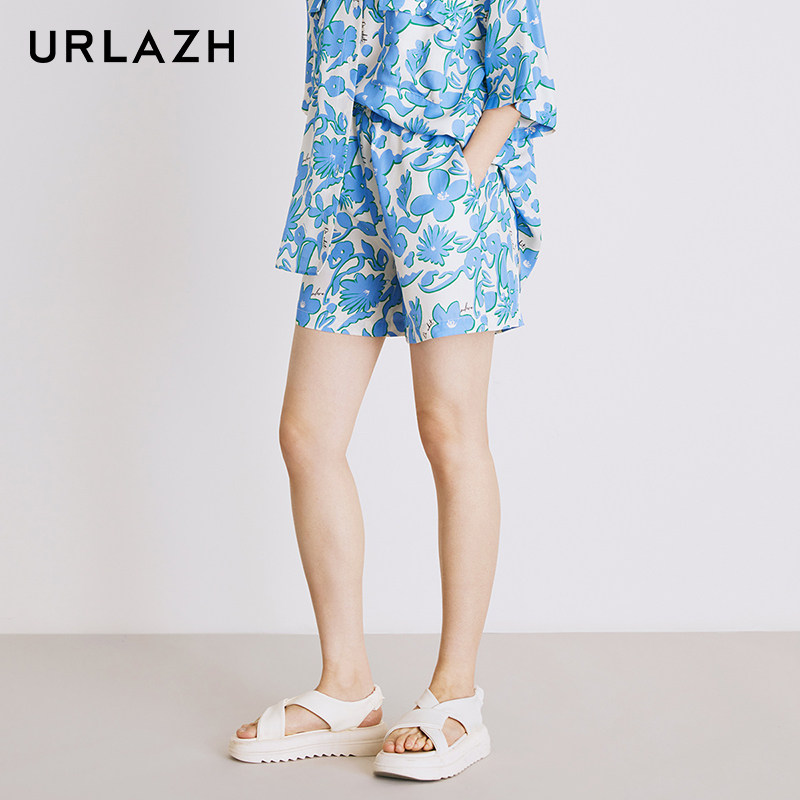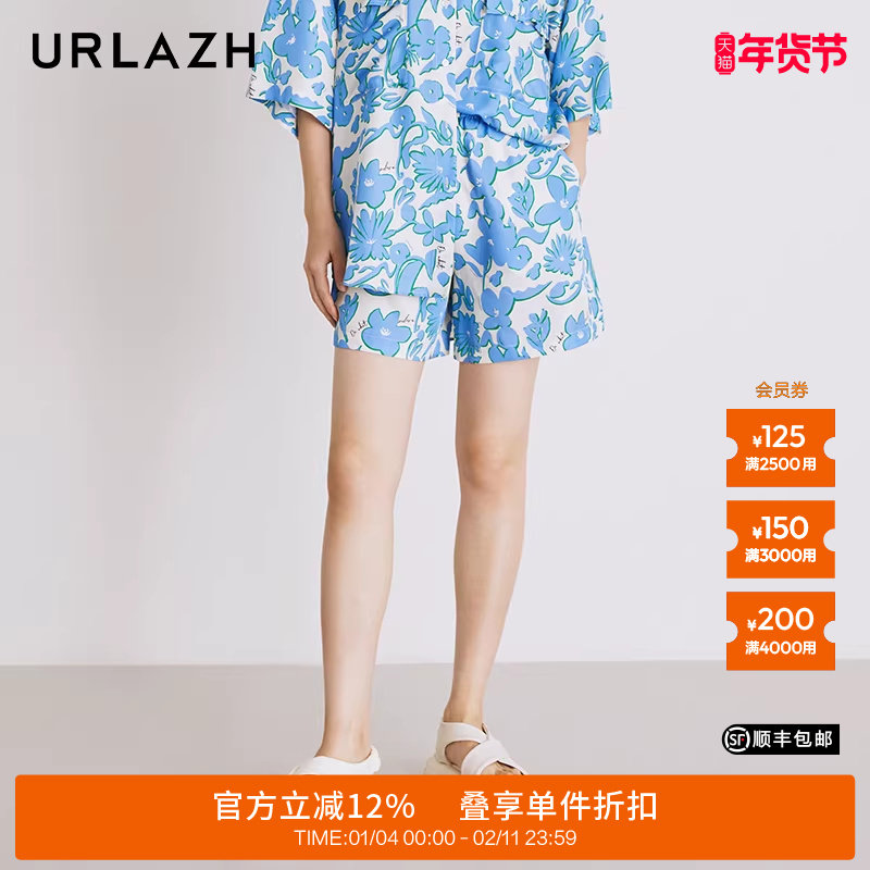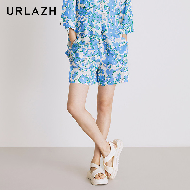📚 URLAZH有兰夏季新款复古宽松直筒时尚印花蓝色海边度假休闲短裤女