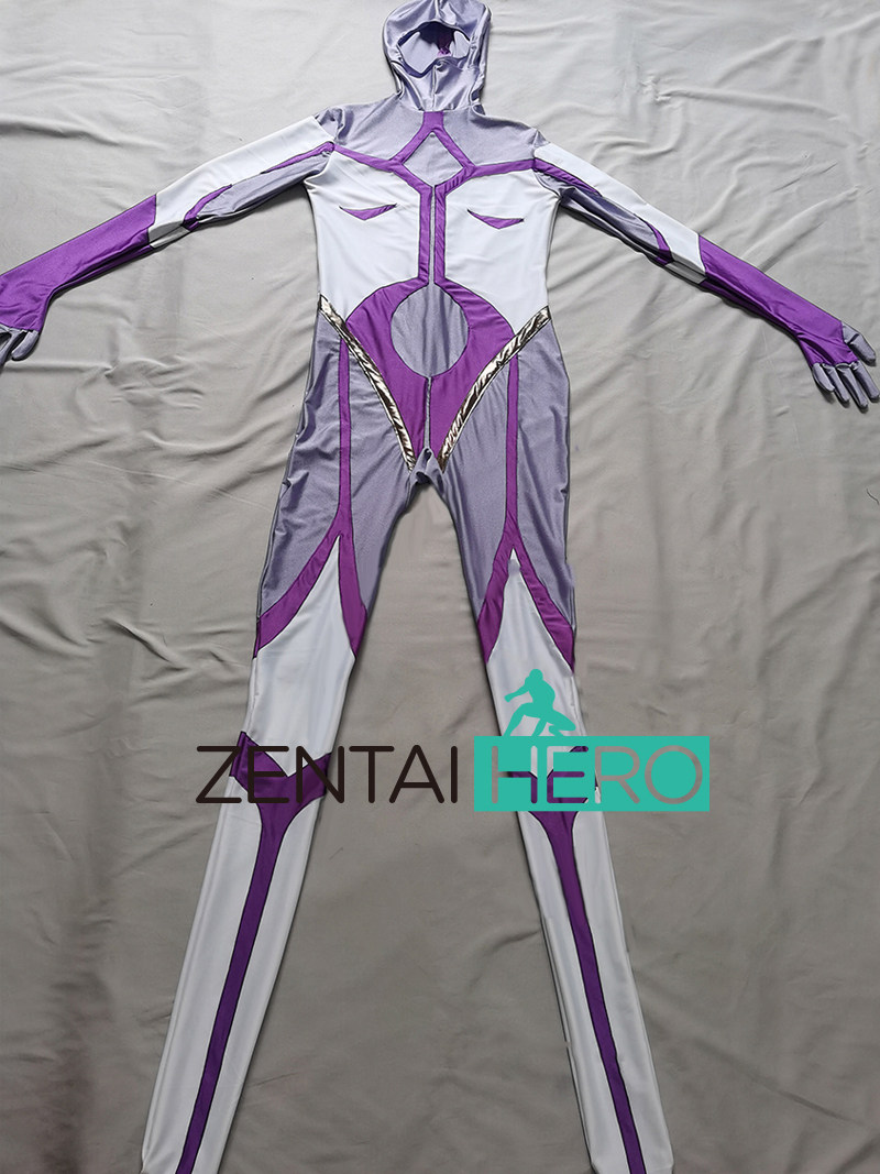 📚 日本女凹凸曼女超人火花V2 Mighty Lady Cosplay服装紫色莱卡拼接